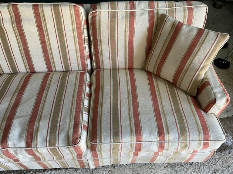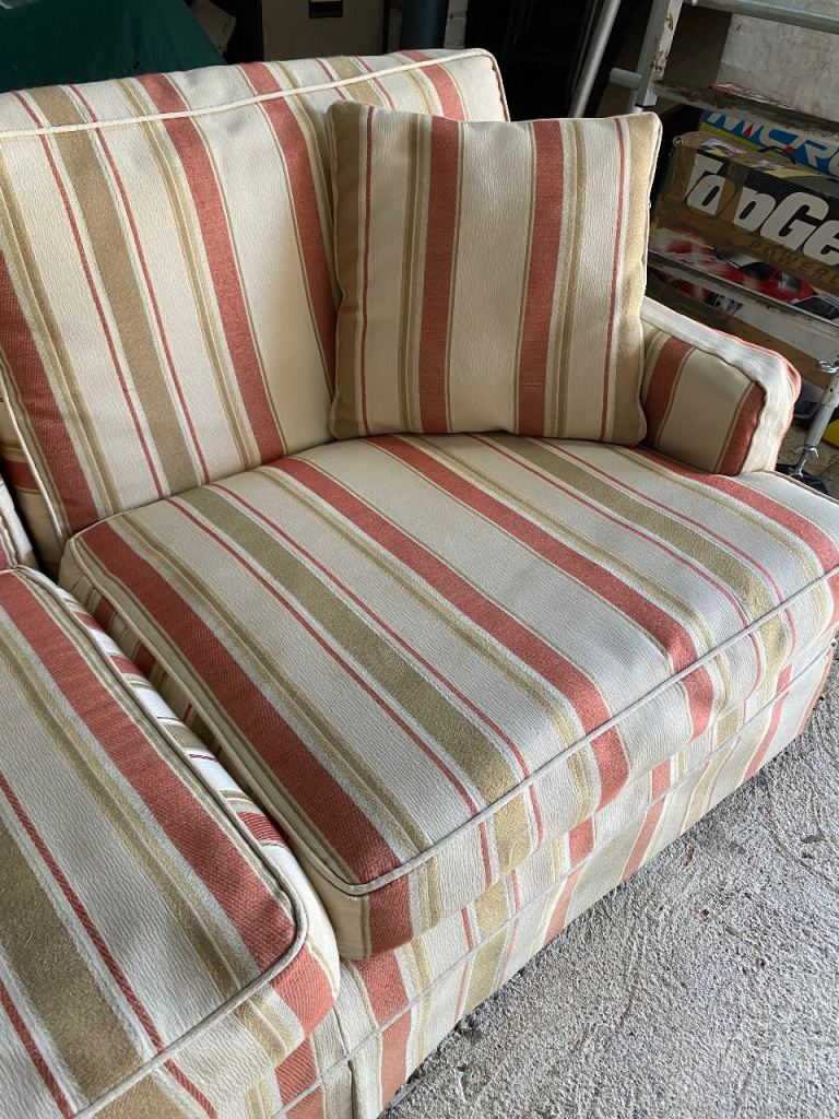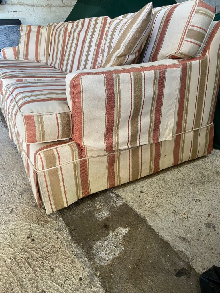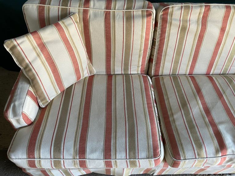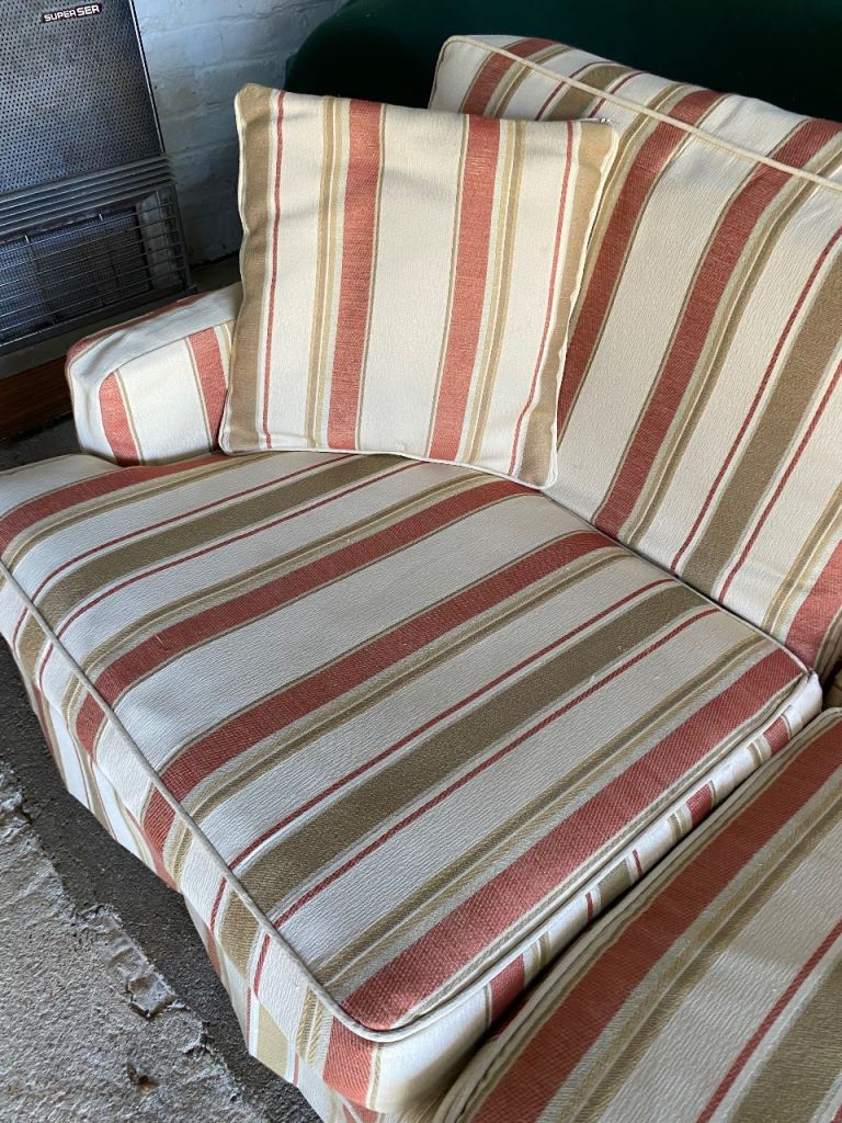 a lovely, elegant striped x4 seater sofa complete with x2 matching cushions and arm-rest covers. Extremely comfortable and very durable. Re-decorating room, so no need for it. Free to a good home. Collection only (you’ll need a large van). The frame is solid teak and this was a very expensive sofa in its day. No fire safety certificate (pre-dates) otherwise we would have donated it to Sue Ryder. A shame to see it go but now surplus to requirements. We are located near Thorney, PE6.