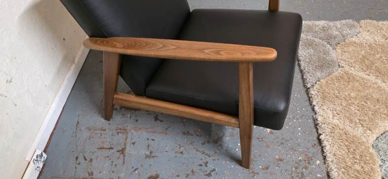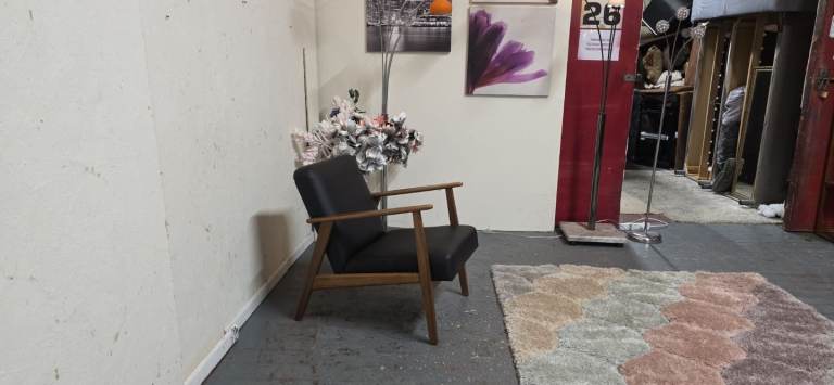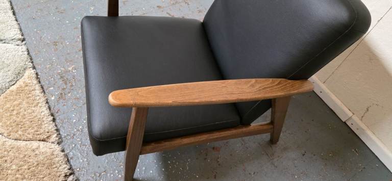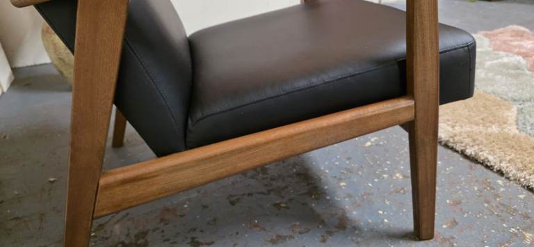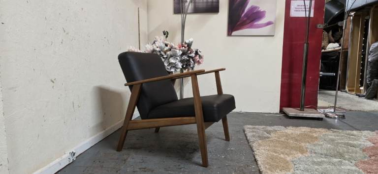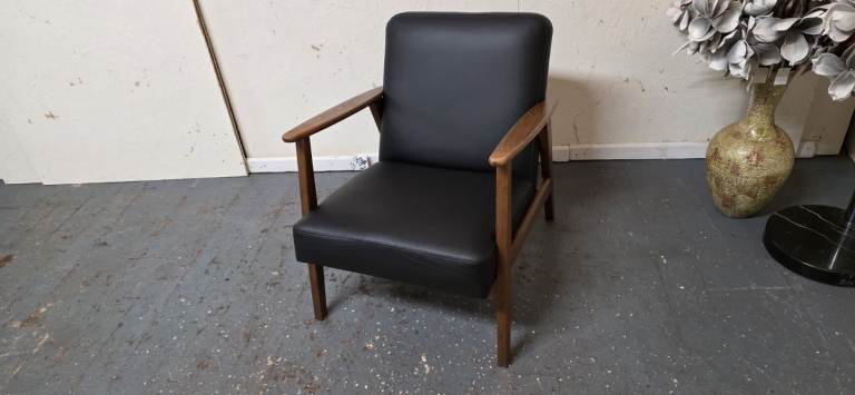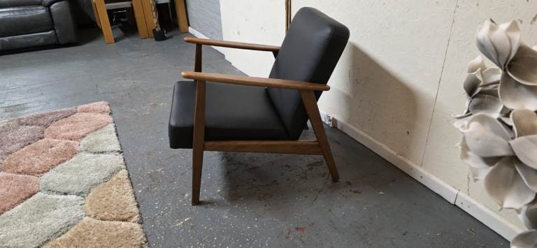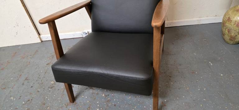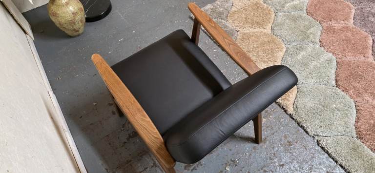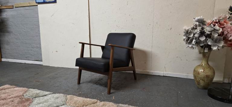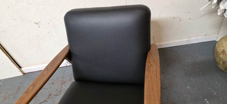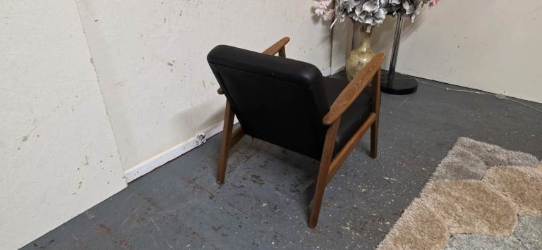 Posting for 5+ yearsIkea®️ EKENASET Black Leather Wood Frame Armchair Excellent Condition
