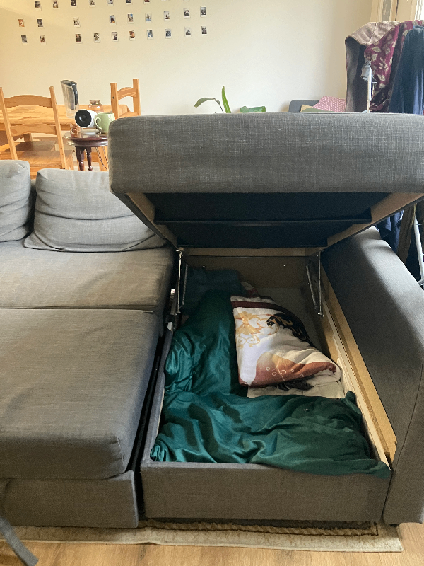 Grey IKEA Friheten Sofa Bed for sale in very good condition. Comfortable and practical sofa that easily converts into a bed and includes storage. It has some signs of use but it's was has been well taken care of.
