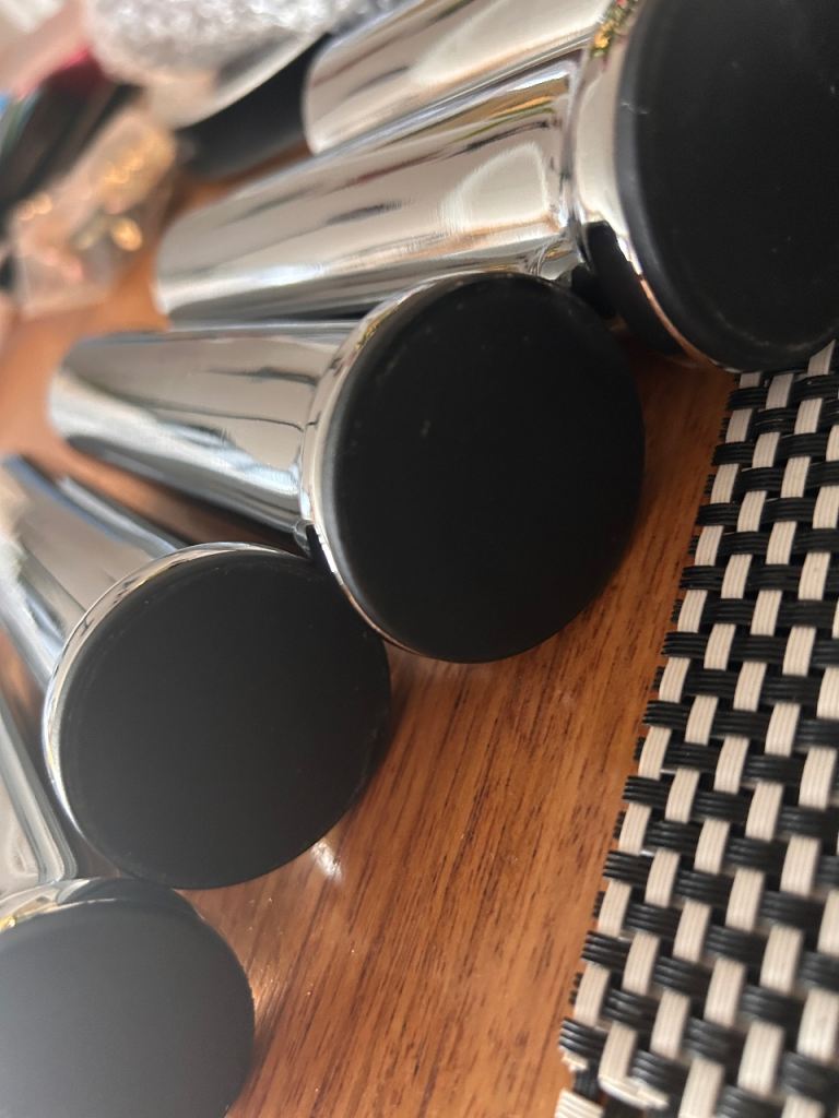 Brand new. They have nice rubber bases to protect your floor. Six altogether