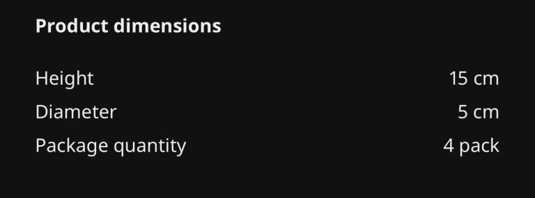 Dimensions in pic