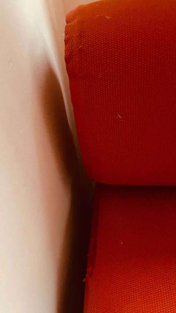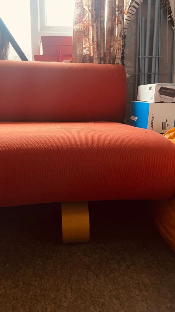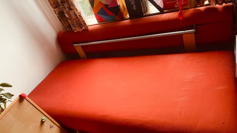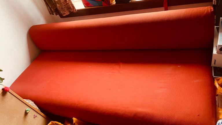 Once the back rest is tilted to the other side the couch is slightly wider than a single bed. Comfy to lie on for. the cover can be removed and washed. The back rest can be dismantled for easy removal. There is some fraying of the orange fabric on on one side. Can be easily covered up if need be.