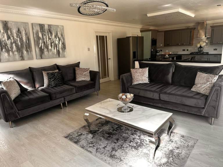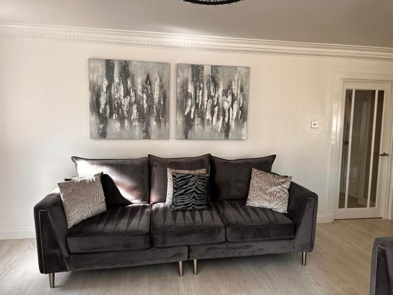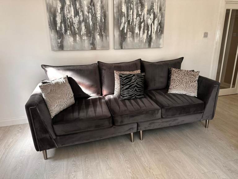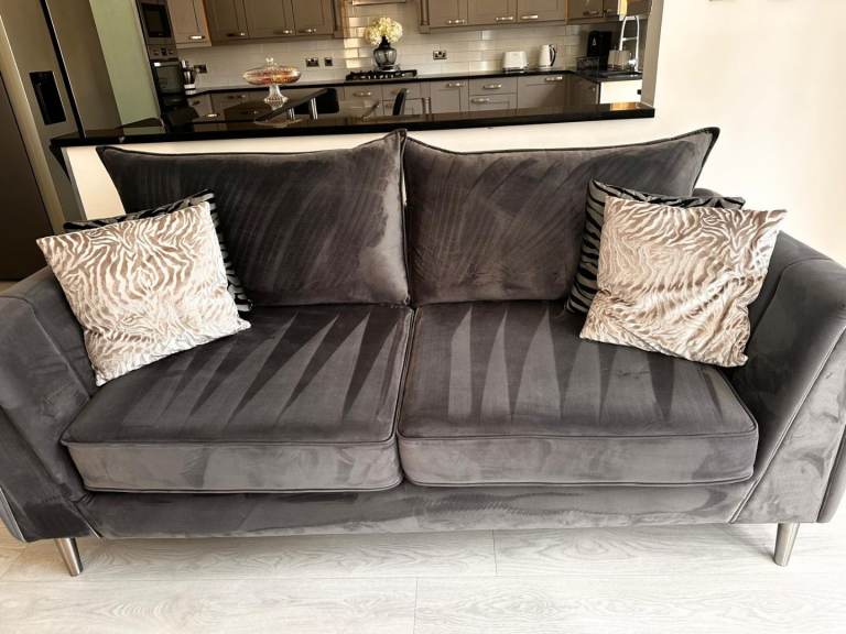 Lovely set of grey velvet sofas, includes a three-seater and a four-seater , both in immaculate condition as can be seen from the pictures.