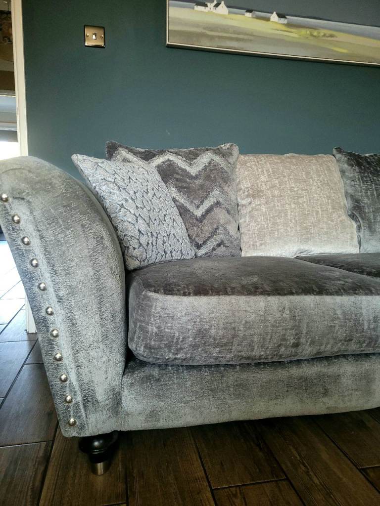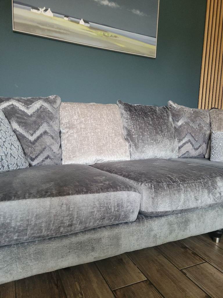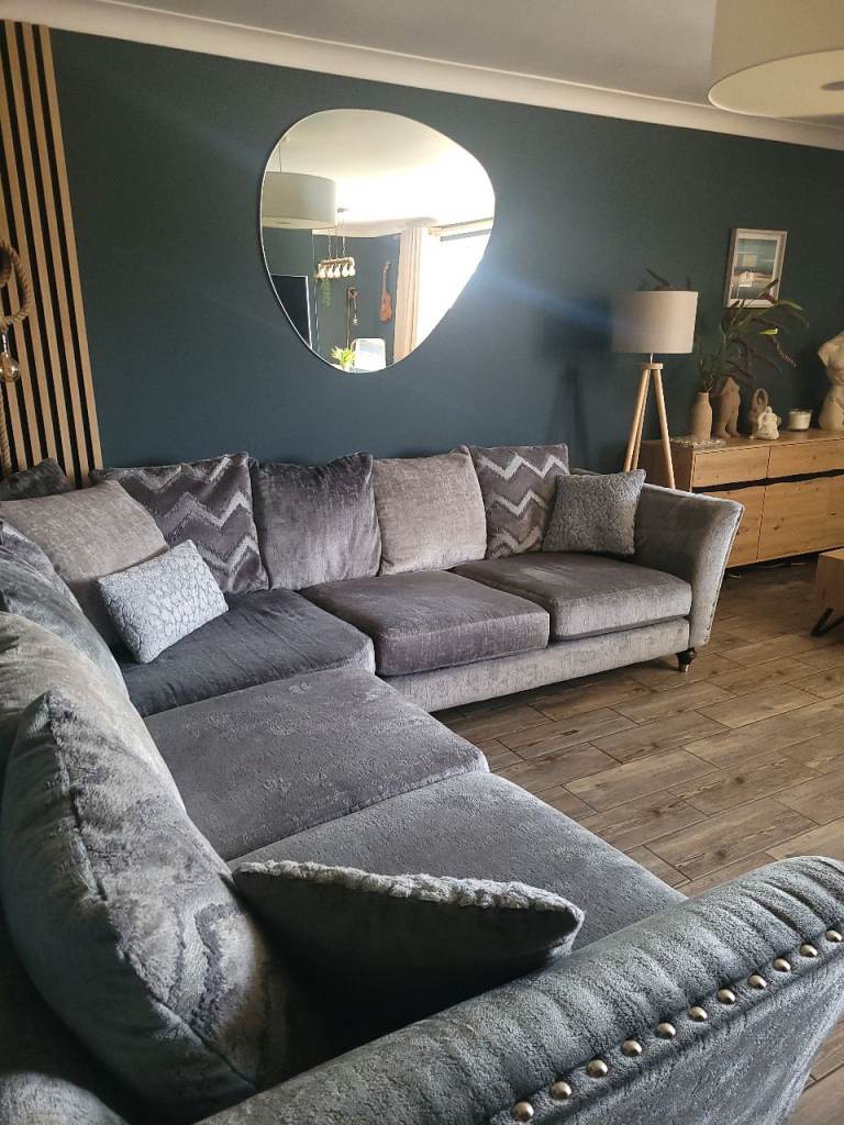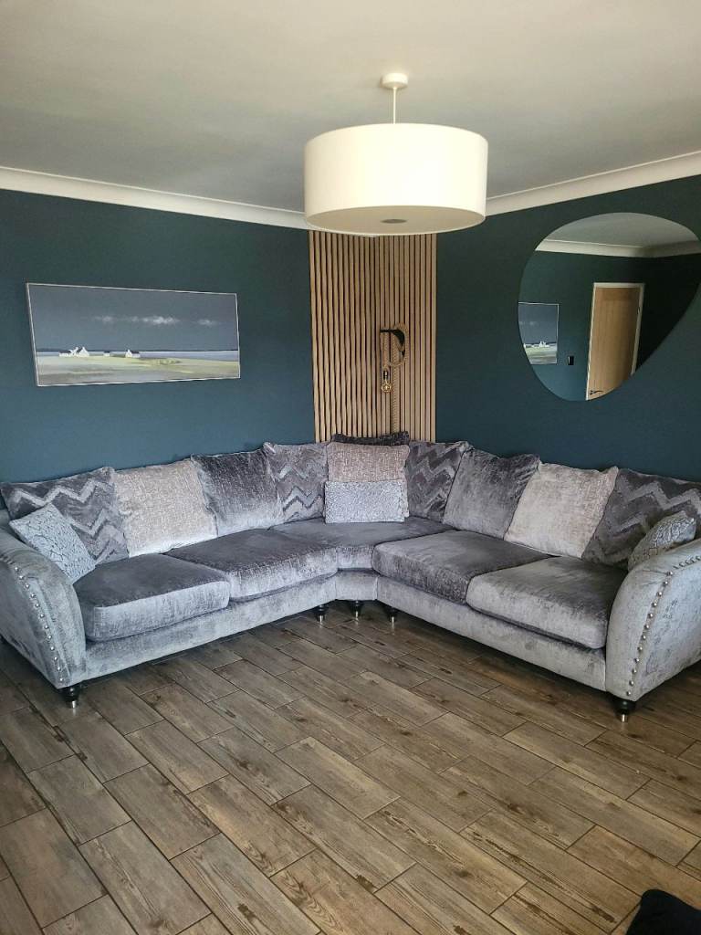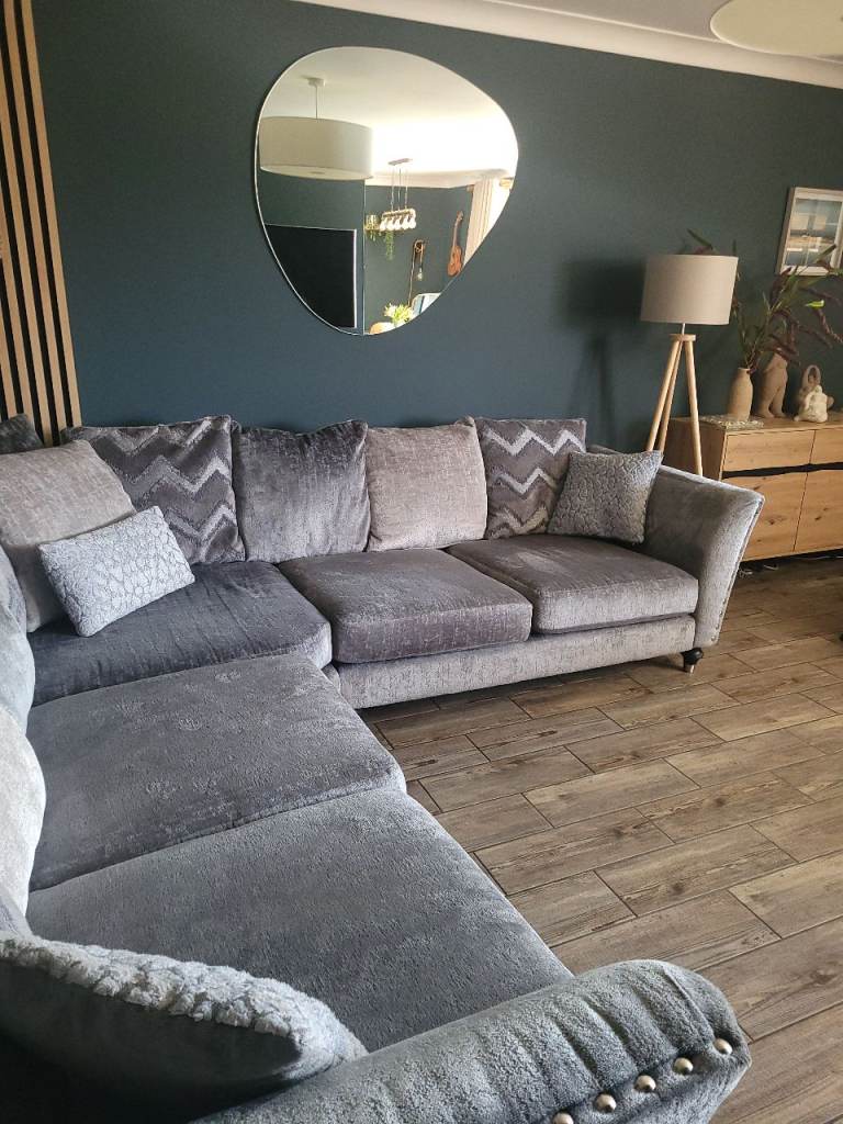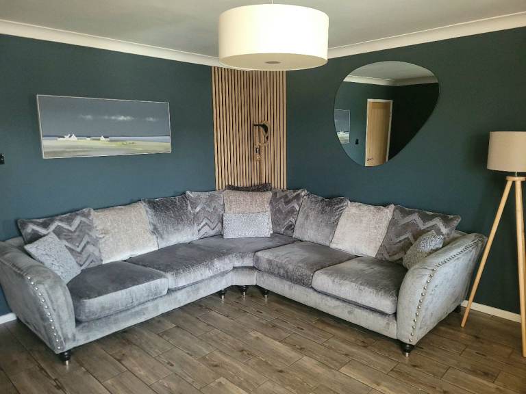 Stunning grey large corner sofa purchased 2 years ago from DFS, still for sale on the website, it's always been covered with throws and never been sat on without, we paid extra for premium cushion fillings, it's very big so please look at the measurements on the listing, all covers are removable and washable, no marks or stains, it's like new! it's very comfortable, it's ready to collect on the 29th March from lingwood, a large van will be required