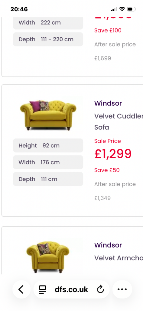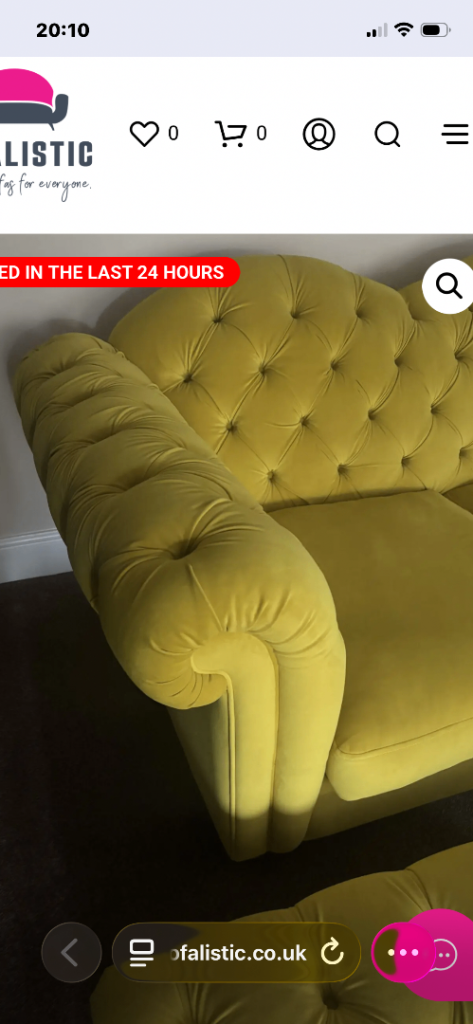 Gorgeous yellow velvet joules sofa and large pink joules chair for sale .