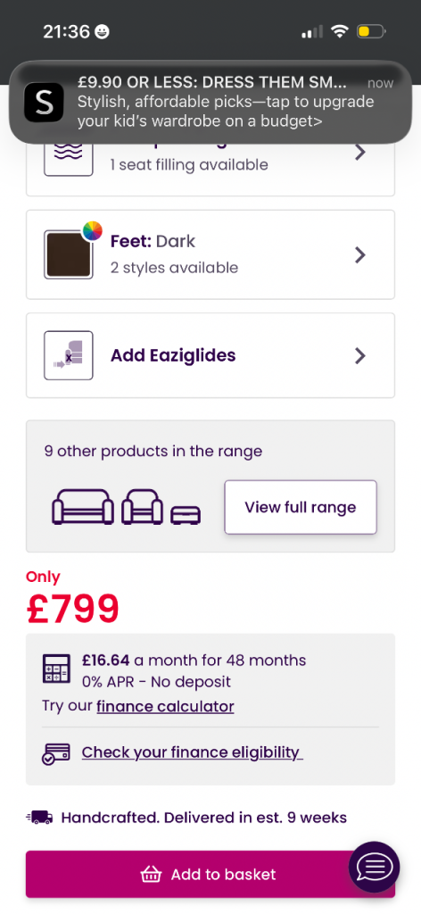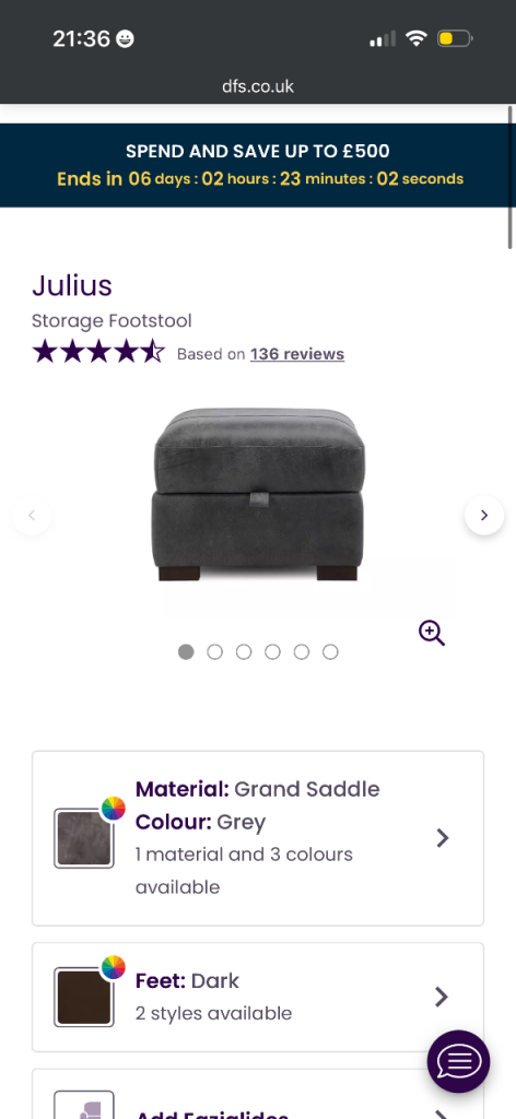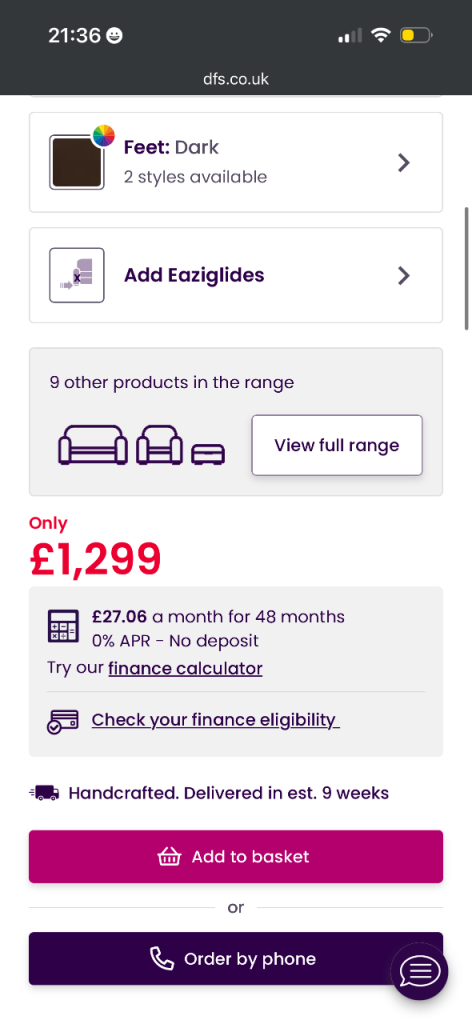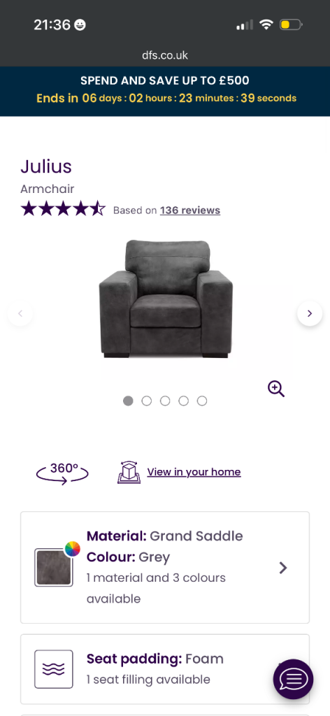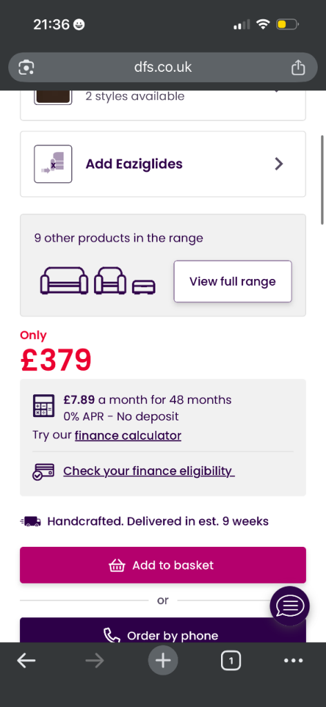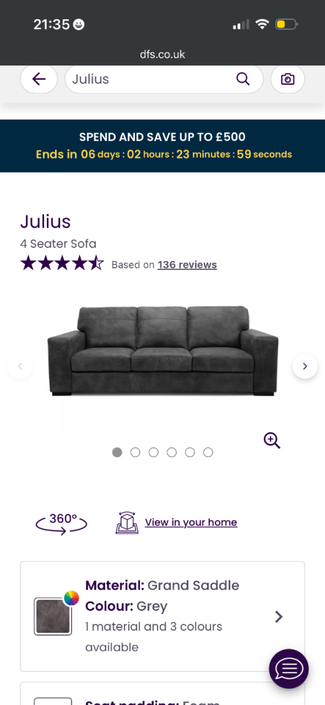 3 yrs old 4 seater chair and pouffe cost £2000 from dfs