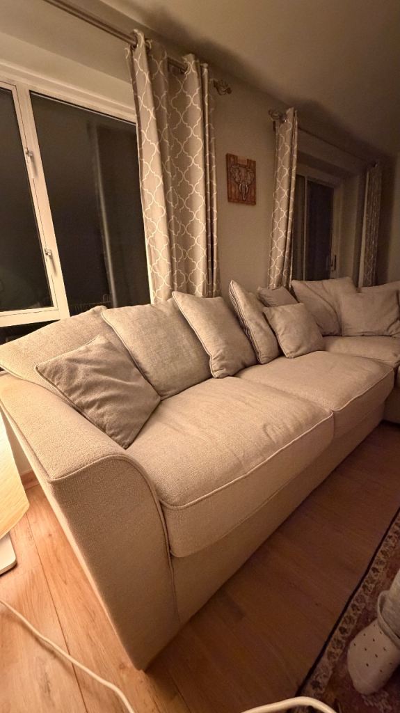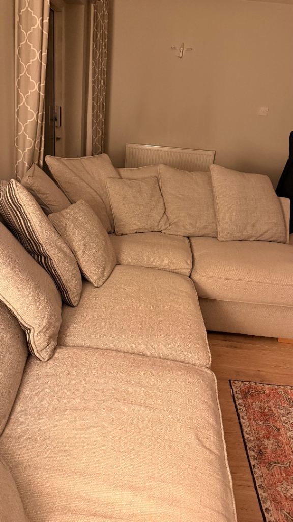 Posting for under a monthL-Shaped Off-Cream Fabric Sofa with Reversible Cushions