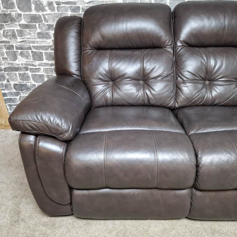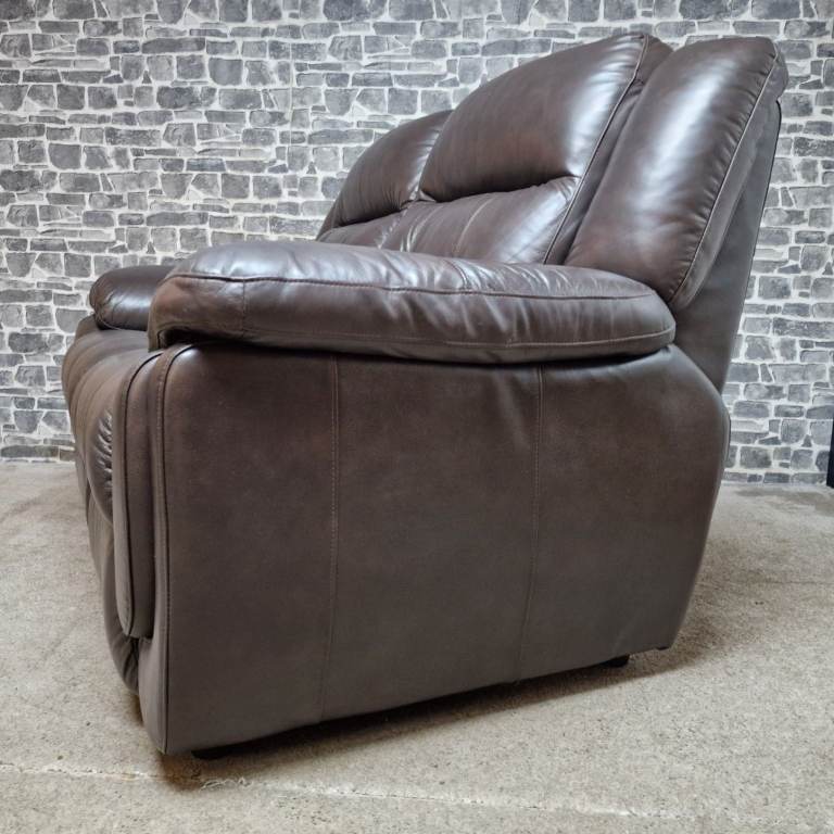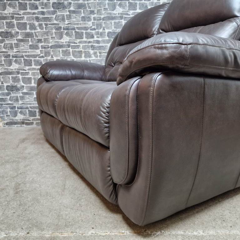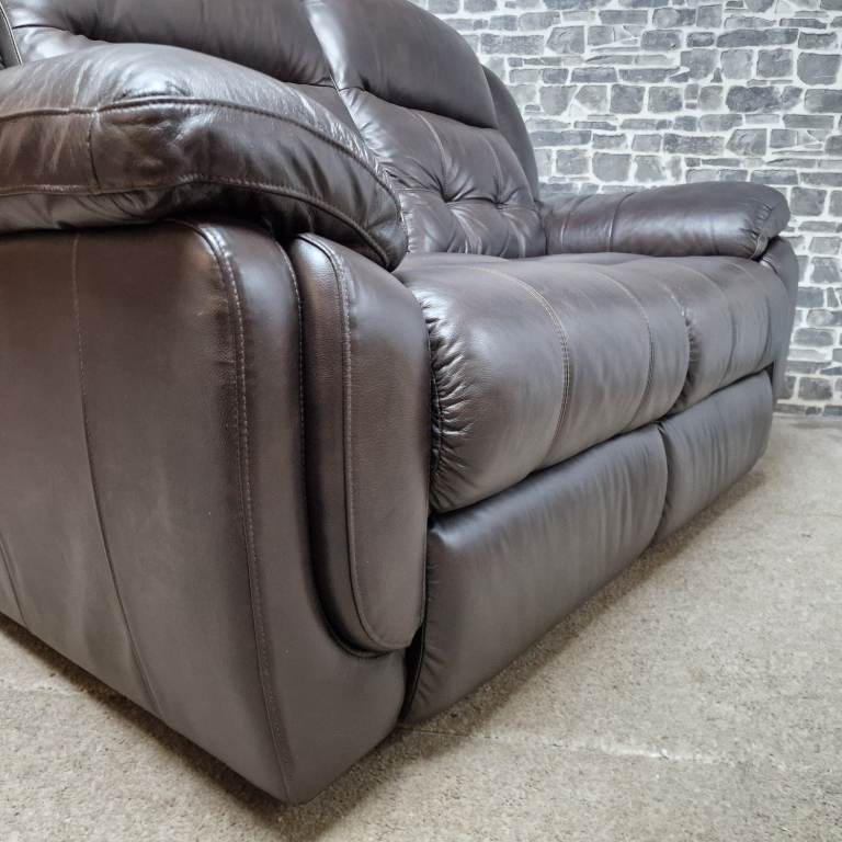 A genuine La-Z-Boy 2 seater sofa in dark brown leather. It has deep cushioning, padded arms and a comfortable supportive back. The sofa is overall in good condition with only minor signs of use as shown in the photos. Ideal for any living room or lounge and built to last. Dimensions: L 165 x D 85 x H 100 cm