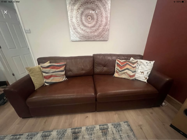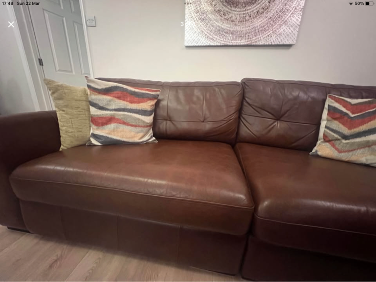 The sofa is brown. Very large and great quality leather. Can deliver to Haverfordwest/Milford Haven Dock area for £10.