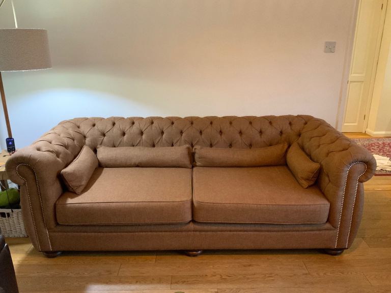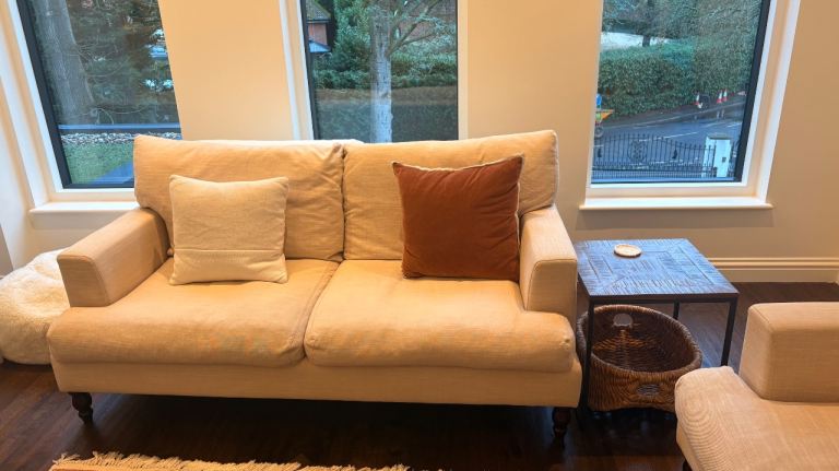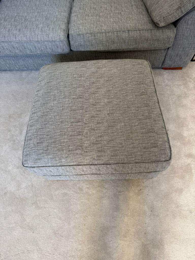 Lightly used large sofa, matching armchair and storage footstool from Next. These items have been in a rarely occupied flat for the past four years, so they are in excellent condition with minimal wear.