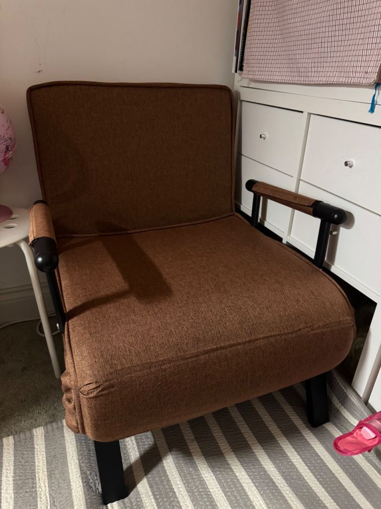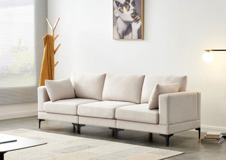 Posting for 13+ yearsLarge beige sofa with large foot stool
