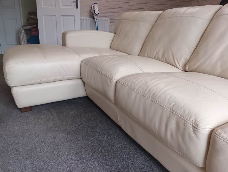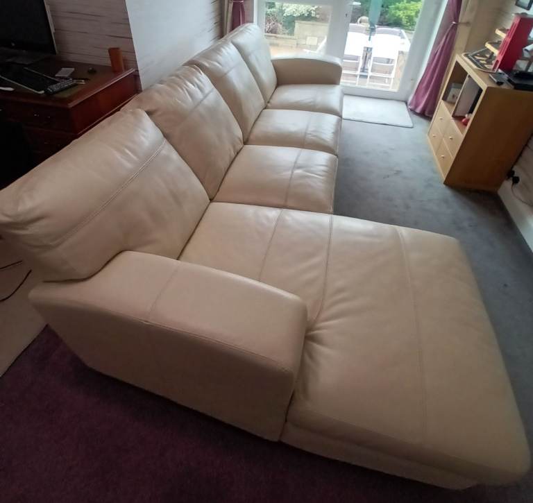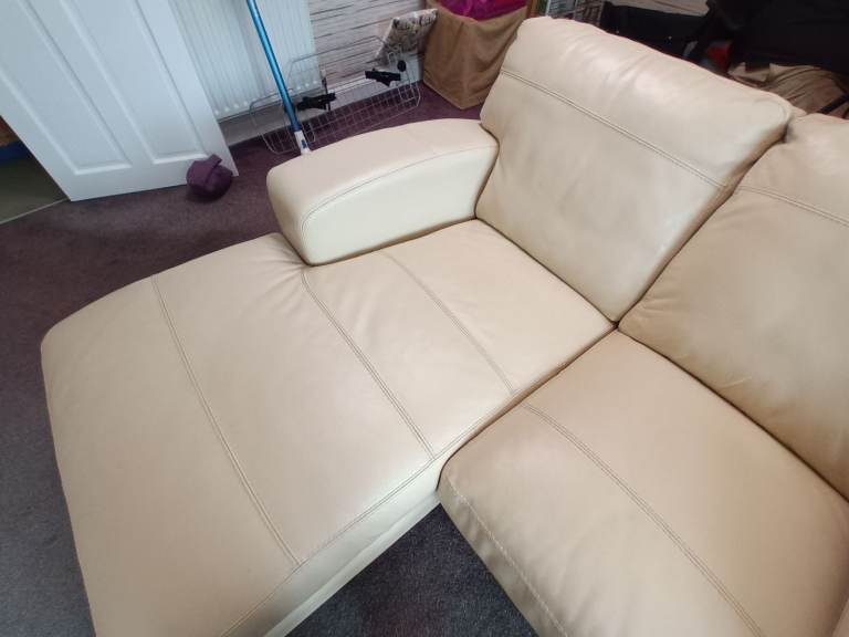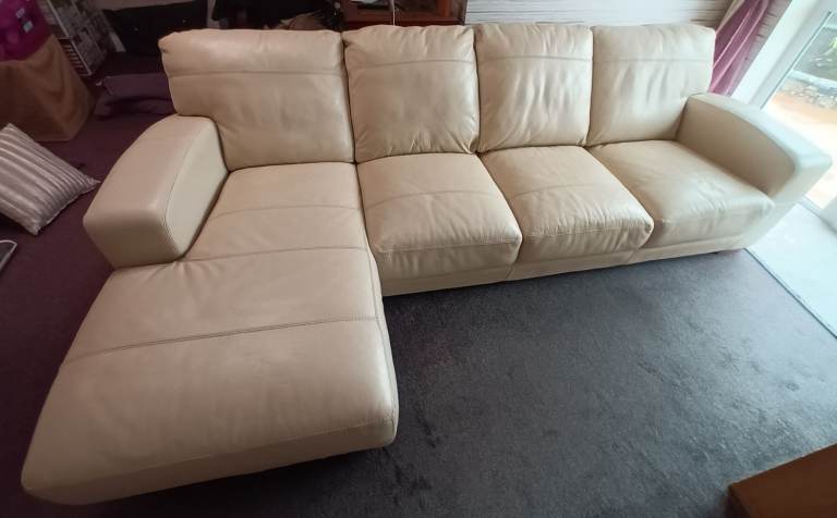 Posting for under a monthLarge Chaise Sofa- Cream Leather. VGC