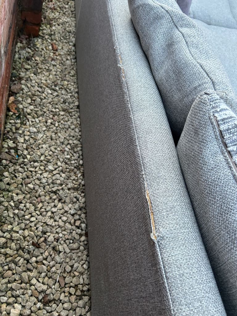 Sofa has been professionally cleaned and is from a pet and smoke free home. Slight rip at the rear of the sofa that cannot be seen if pushed against something eg wall.