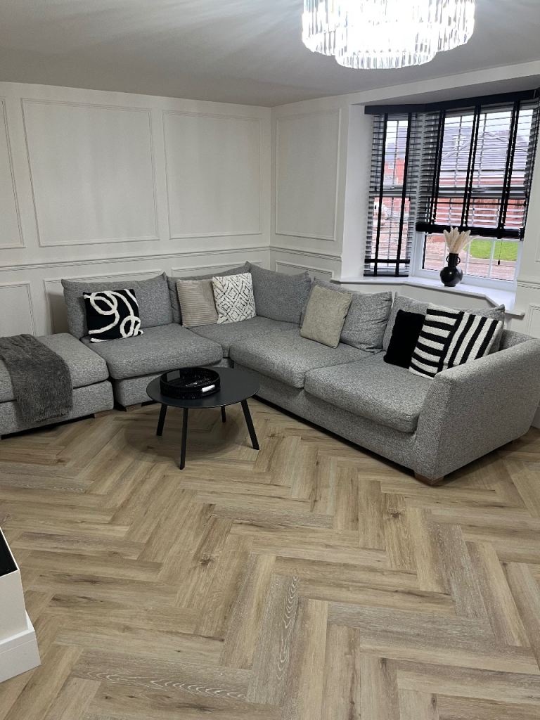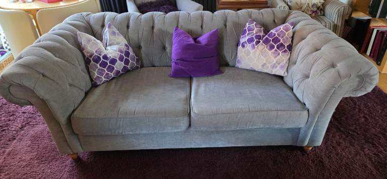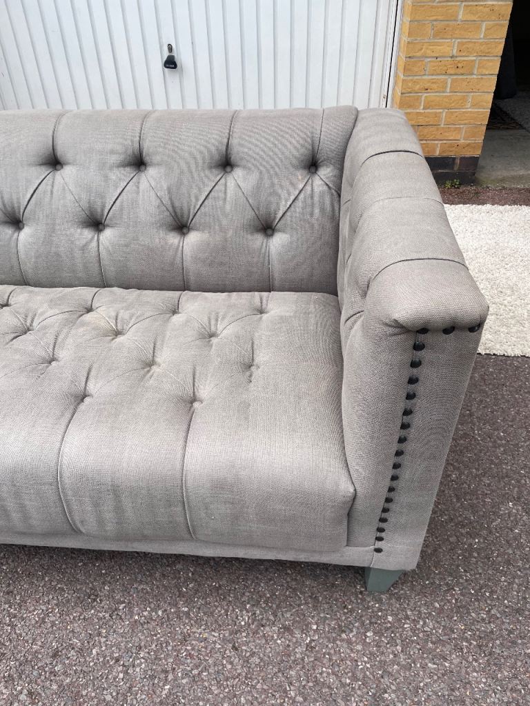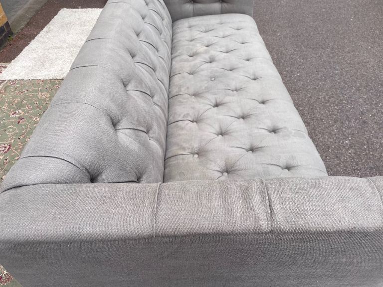 Large grey buttoned sofa free London delivery