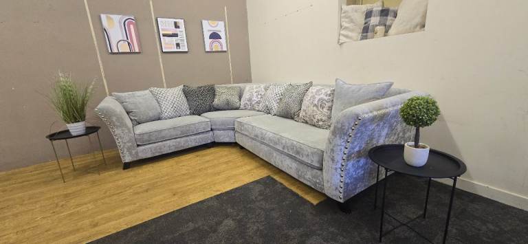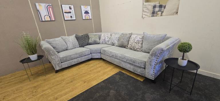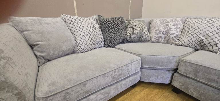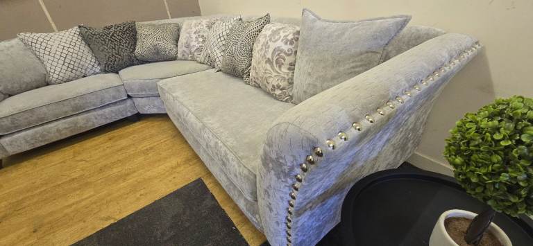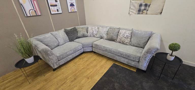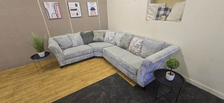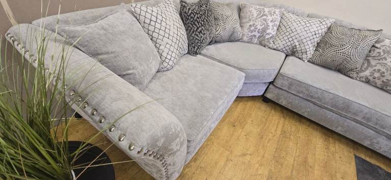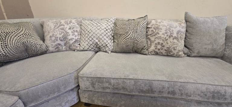 LARGE GREY CORNER SOFA WITH HIGH ARMS DELIVERY AVAILABLE