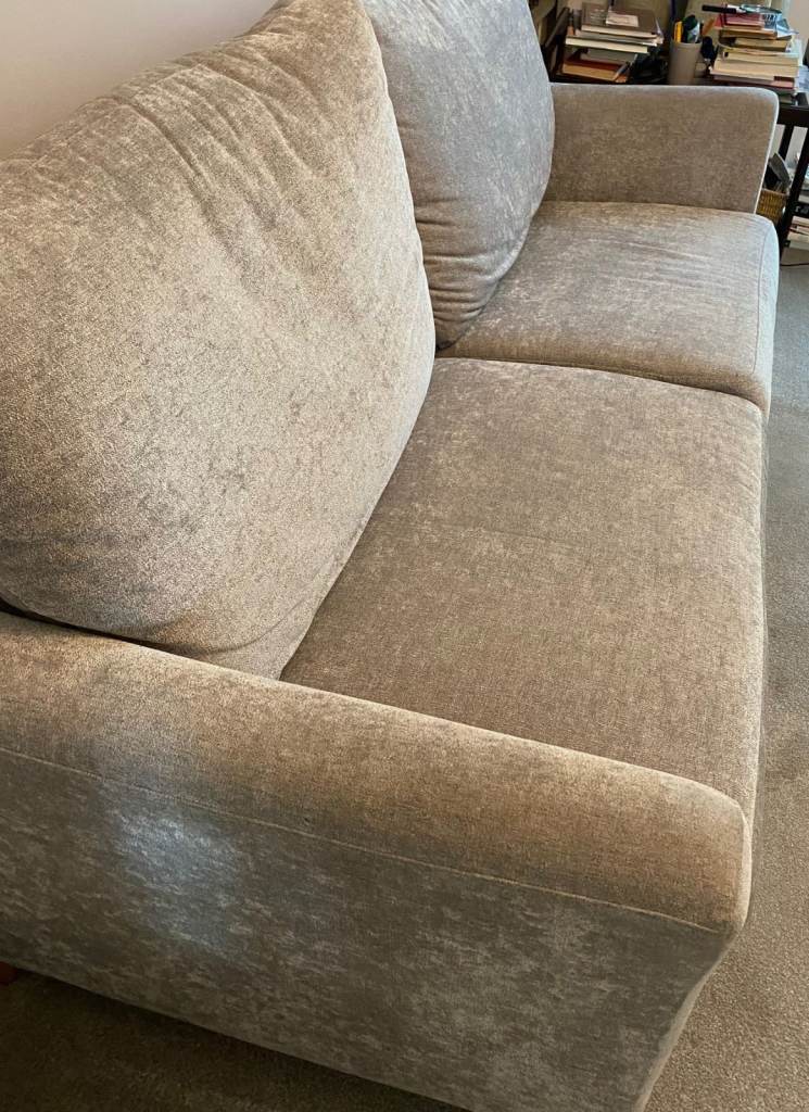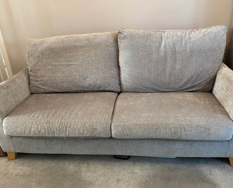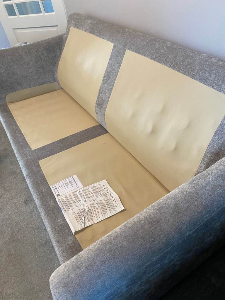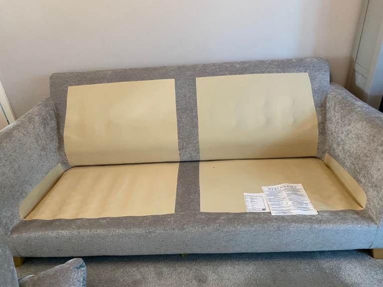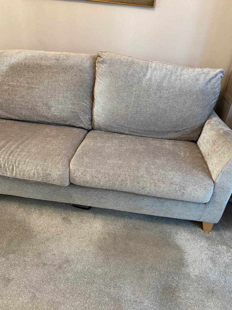 Large Grey Debenhams Settee. 2 Firm seat cushions and 2 large softer cushions behind. Light wood feet. Approximate measurements are Length 191cm, Depth 89m, Height 102 cm. Arm to floor 89cm. In VERY GOOD CONDITION. Approx 4 years old .Was used in secondary lounge and rarely sat on and covered over. Recently moved to living room but too big for the room hence the sale. Quality settee and cost over £1000 new. ( It looks better than the pictures!