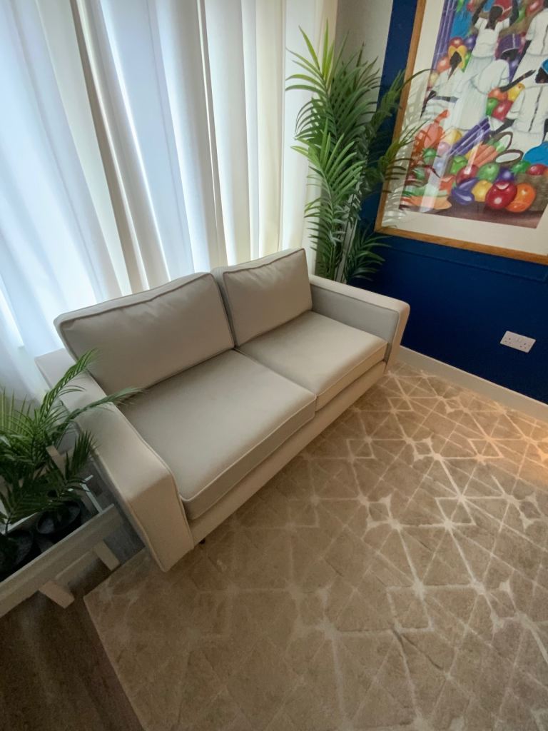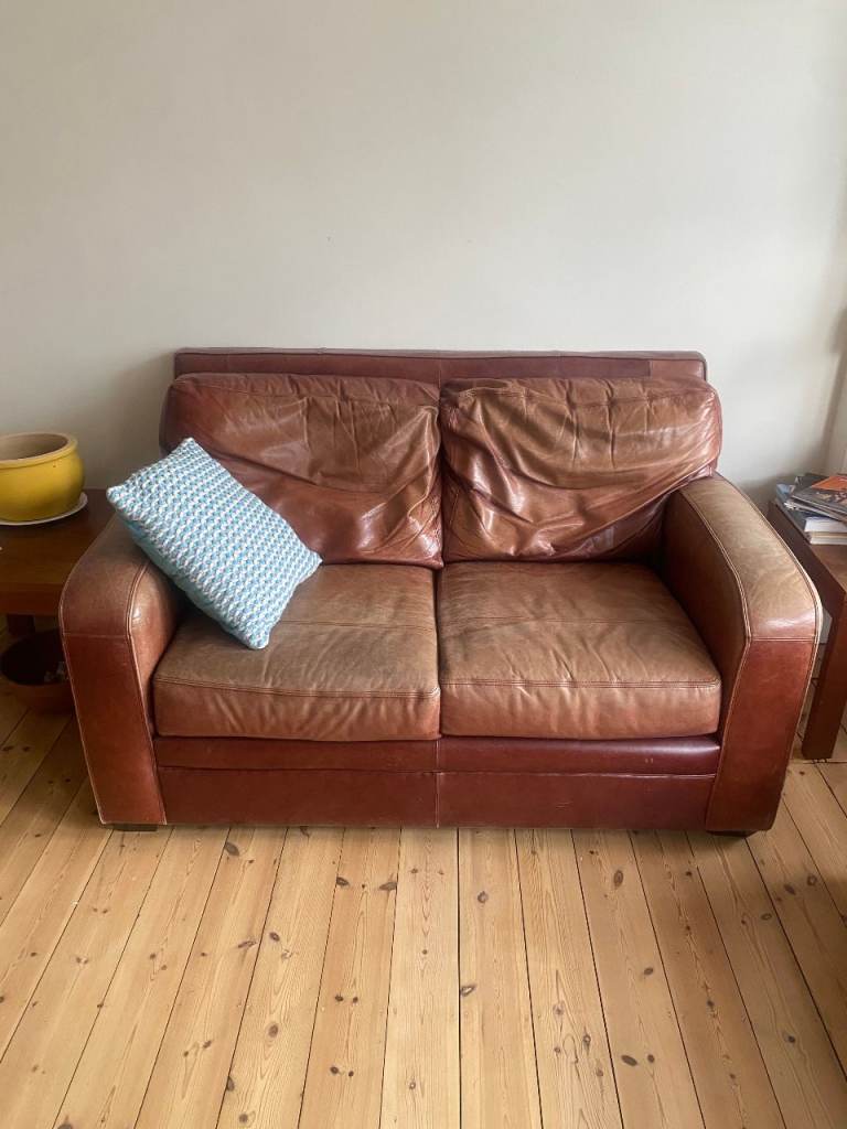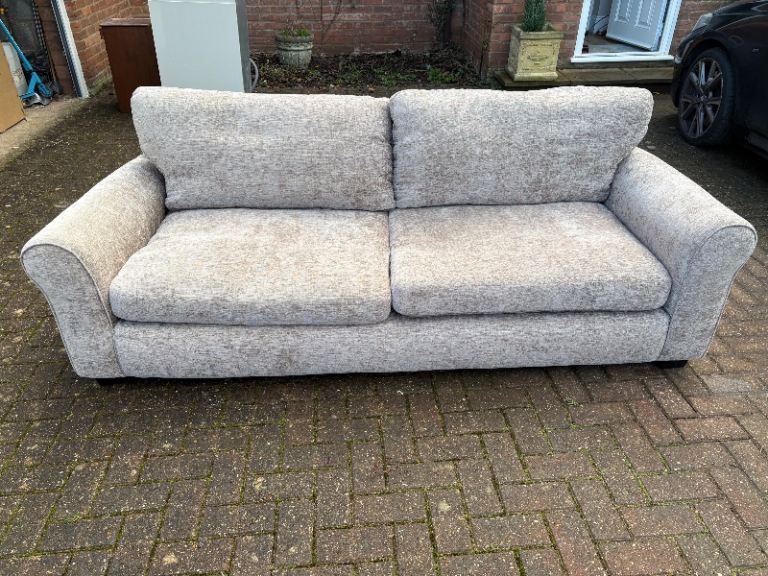 The sofa is in good used condition, with light signs of wear consistent with normal use, as shown in the photographs. These do not affect comfort or functionality