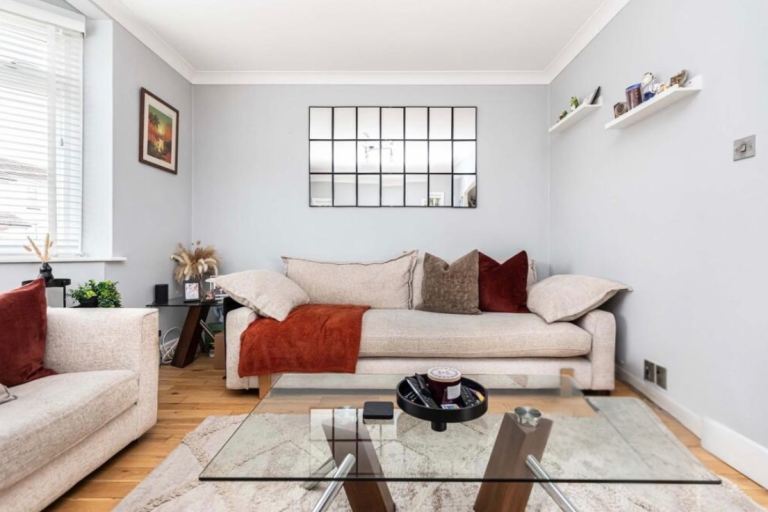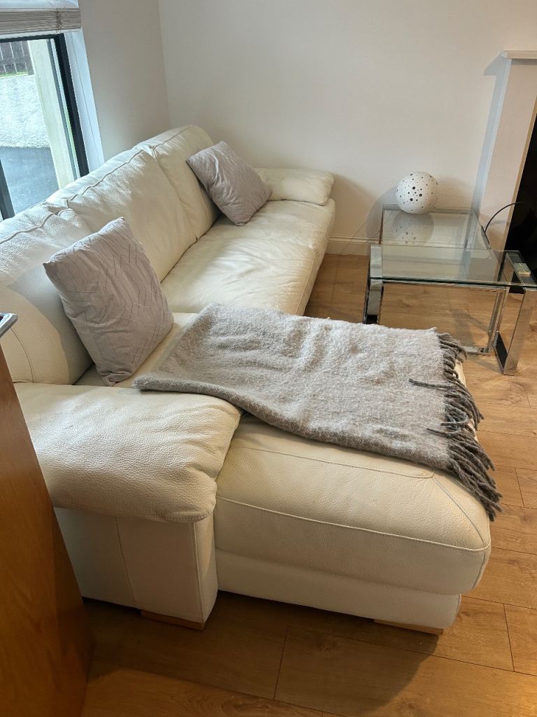 Posting for under a monthLarge L-Shaped Corner Sofa with Footstool – Beige