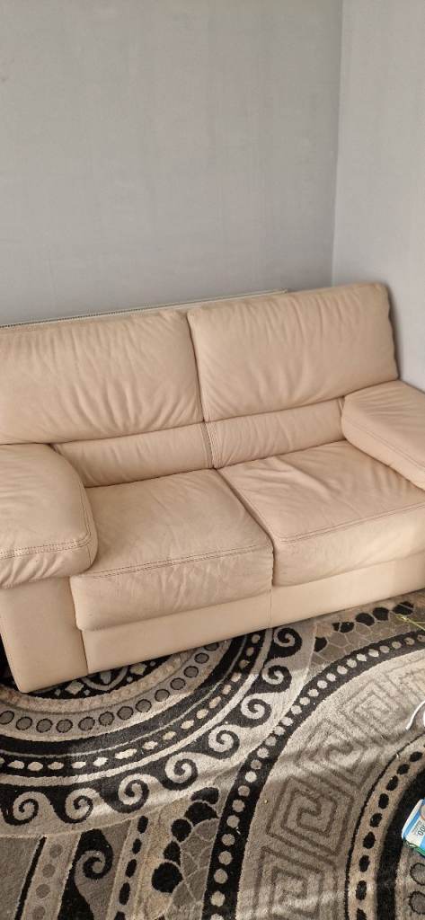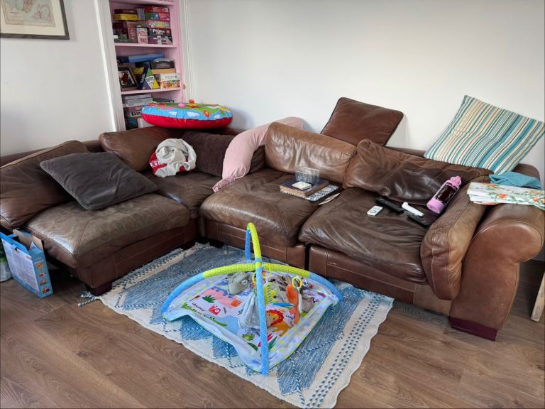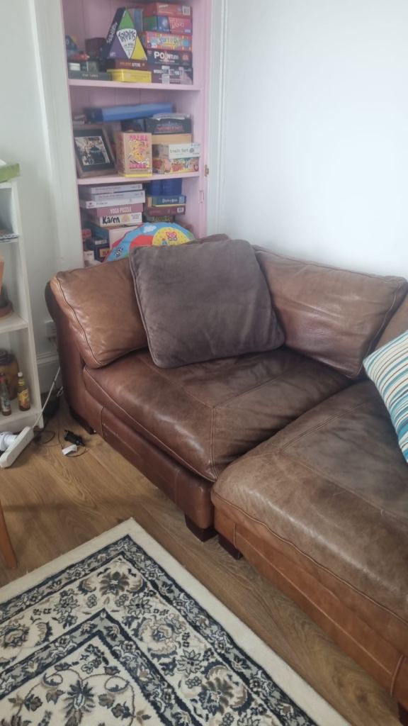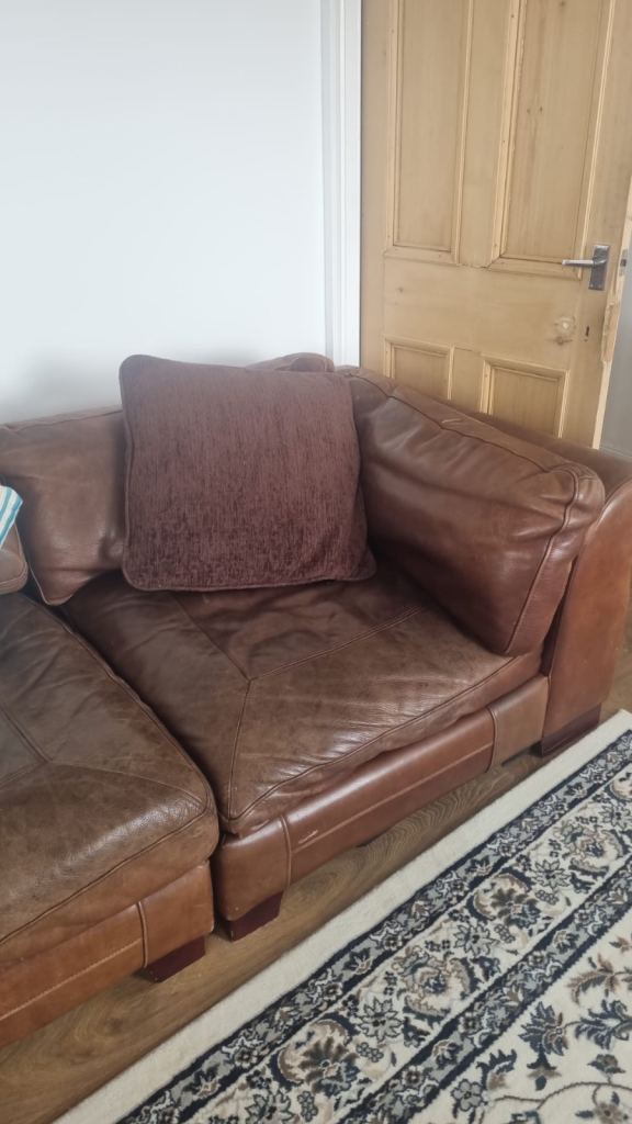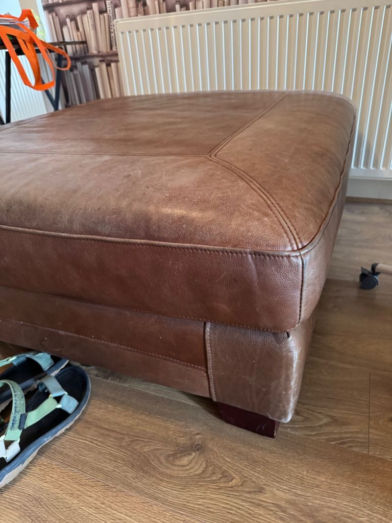 Posting for under a monthLarge leather sofa suite with pouffe!