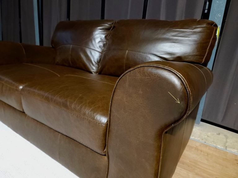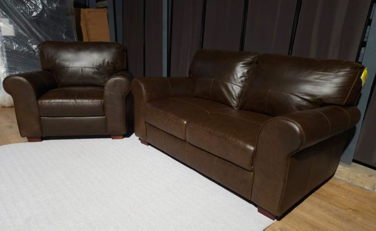 Only couple days old. Transport damaged good quality. One bruise on the arm (marked in photo) nothing very noticeable. Otherwise still new sofas. No signs of use.