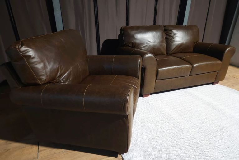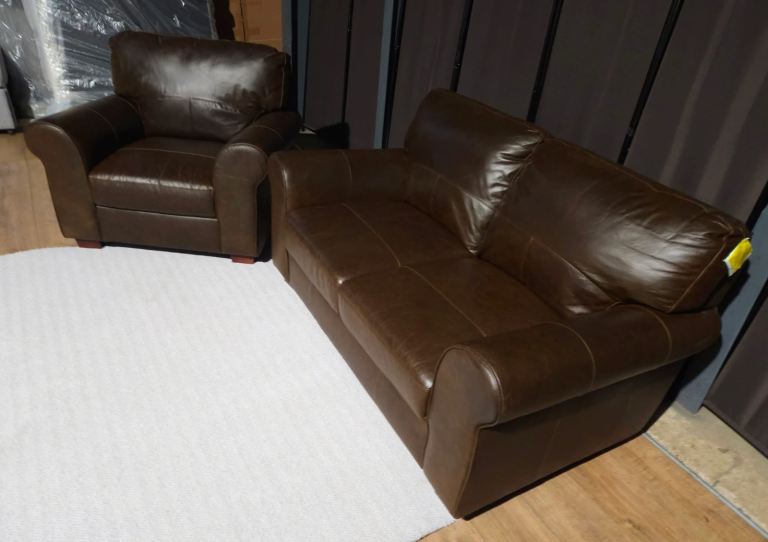 Leather 2 Seater Sofa & Armchair - Brown.