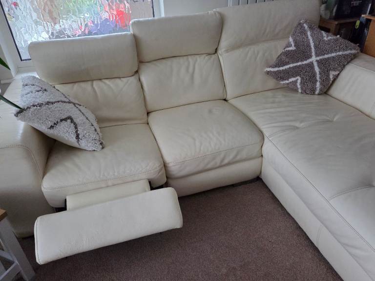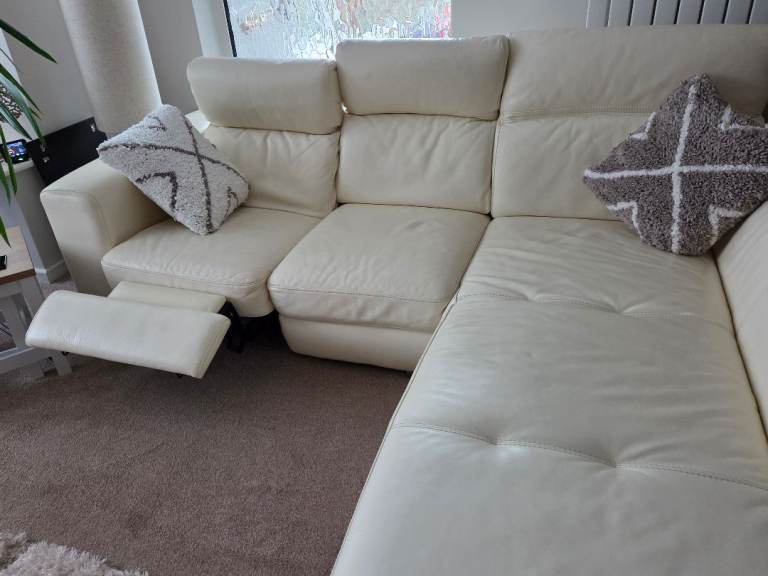 Leather chaise electric recliner. Cream. In fantastic condition. Slight mark on cushion as shown on picture.