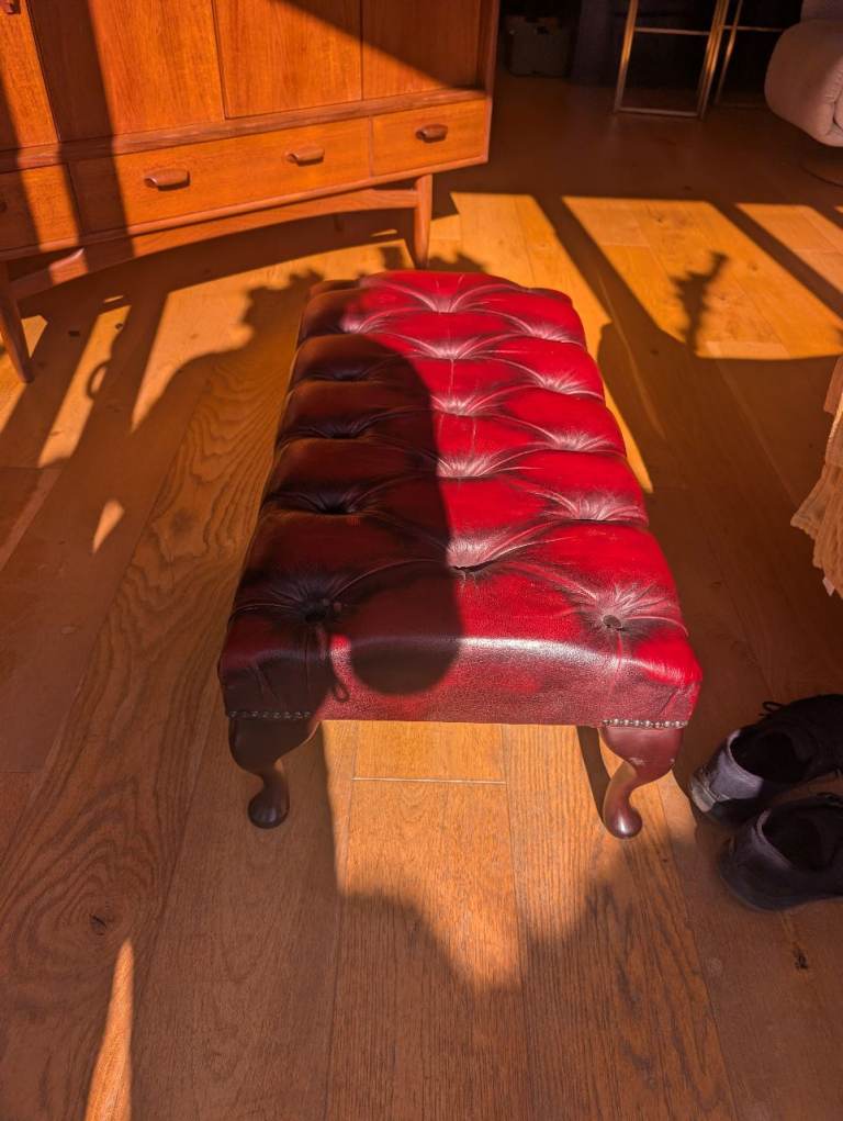 Long chesterfield footstool in good used condition please have a look at the photos as they are part of description.
