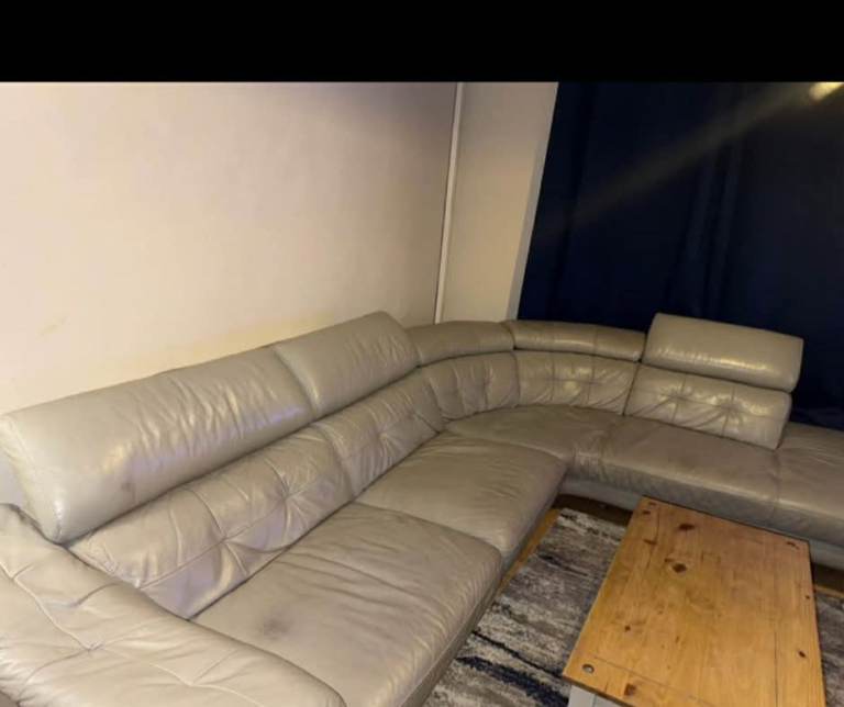 Posting for 4+ yearsLeather corner sofa , light grey, lovely comfy large sofa