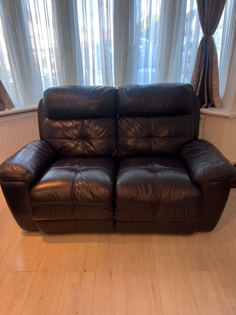 Stylish and comfortable two-seater leather sofa in good condition, perfect for any modern living space. This sofa features smooth electric reclining at the touch of a button, allowing you to effortlessly adjust your seating position for maximum relaxation.
