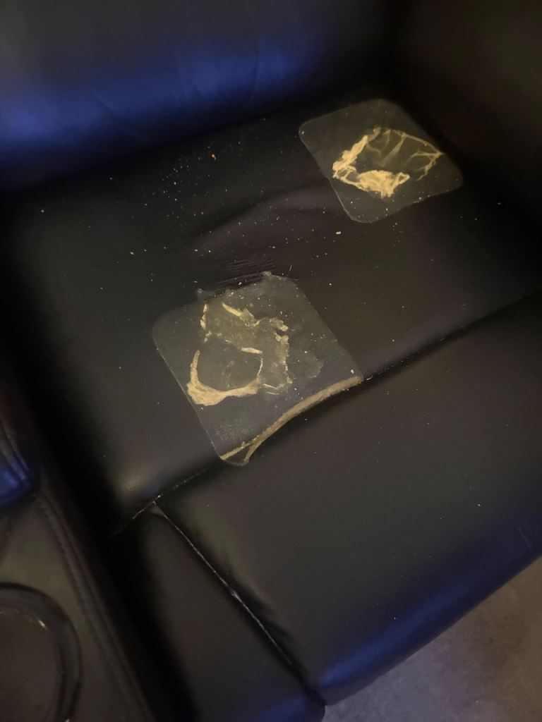 Leather sofa. Electric Recyliner. In good condition. Jusd has 2 mark on the seat. Like new. It’s repairable.