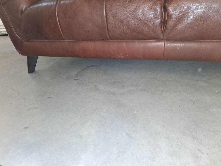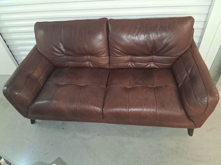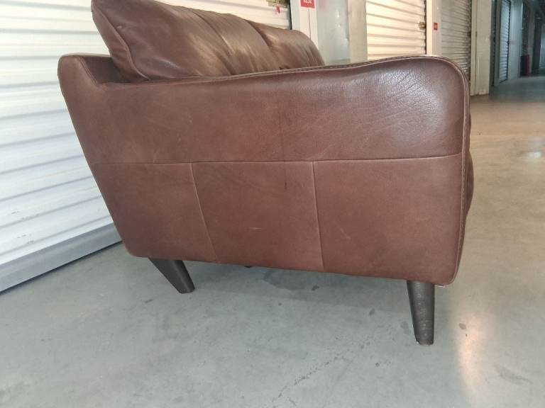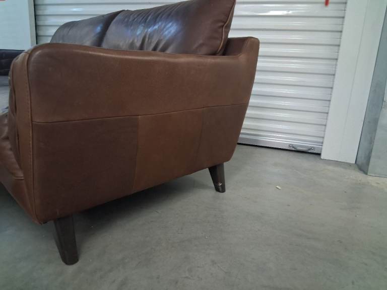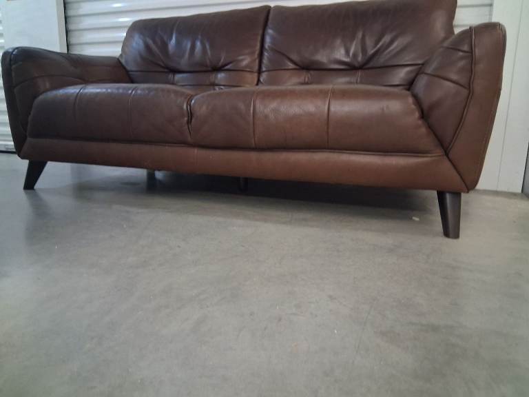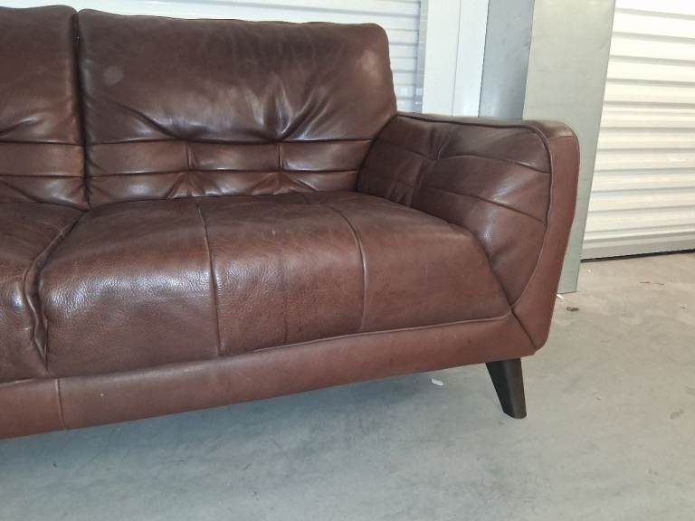 BROWN LEATHER 3 SEATER SOFA 2 SEAT STYLE WOODEN FEET