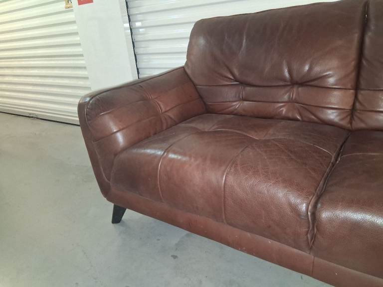 LEATHER SOFA 3 SEATER 2 SEAT STYLE BROWN VINTAGE LOOK