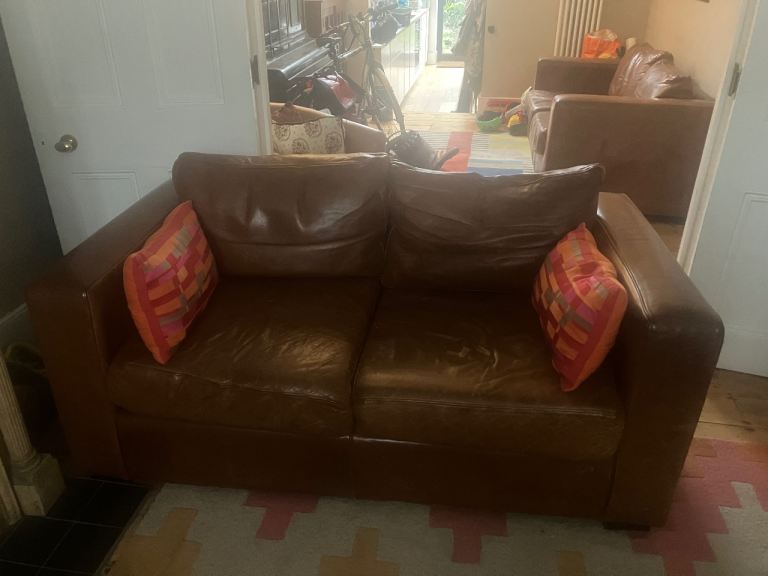 Leather sofa. This is from a top brand and is fairly indestructible using a very high quality leather which can be buffed up. Approx 20 years old. Ideal for hard wearing usage. 165 x 90 x 68 cm (high with feet). Possible local delivery for a small fee.