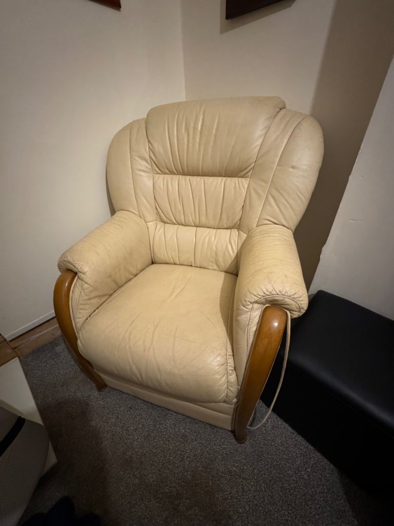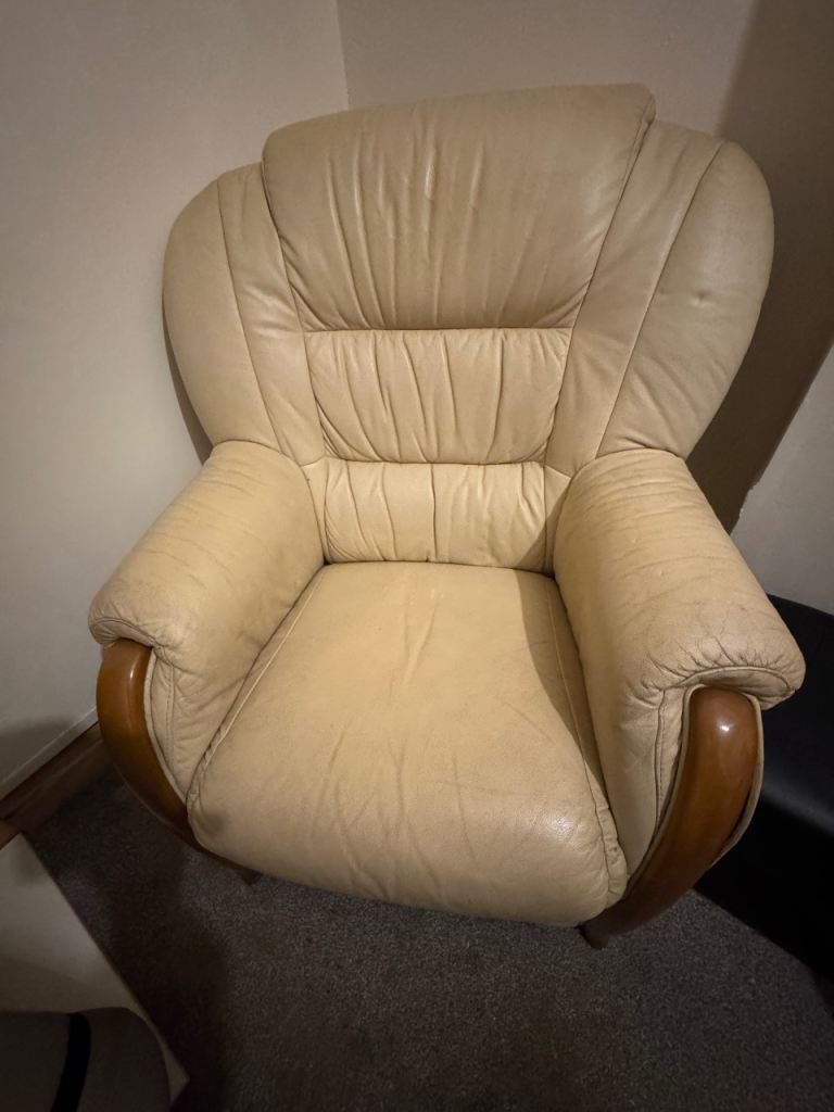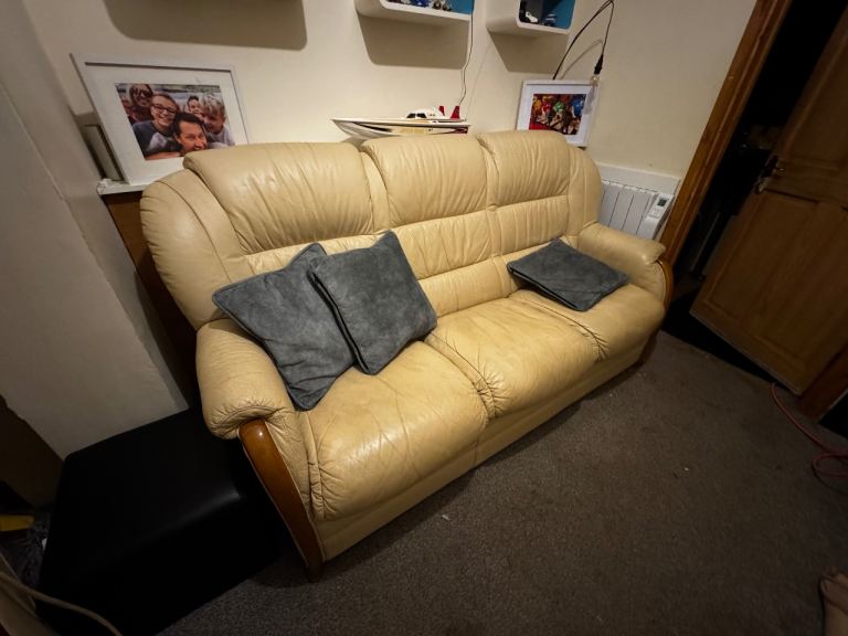 Cream leather sofa - used but has plenty of life left in it.