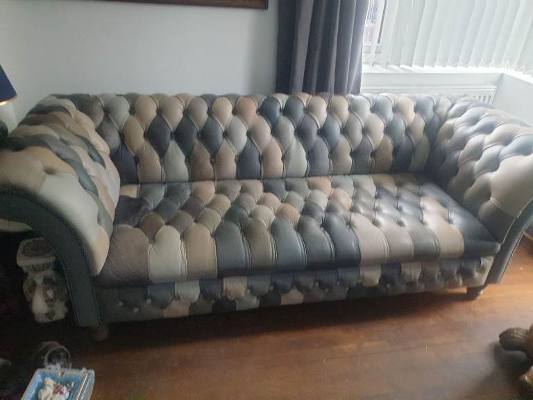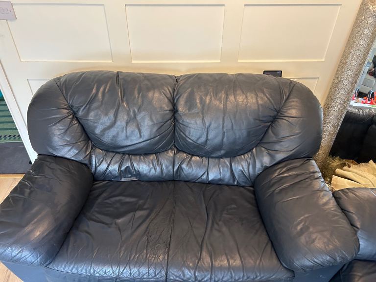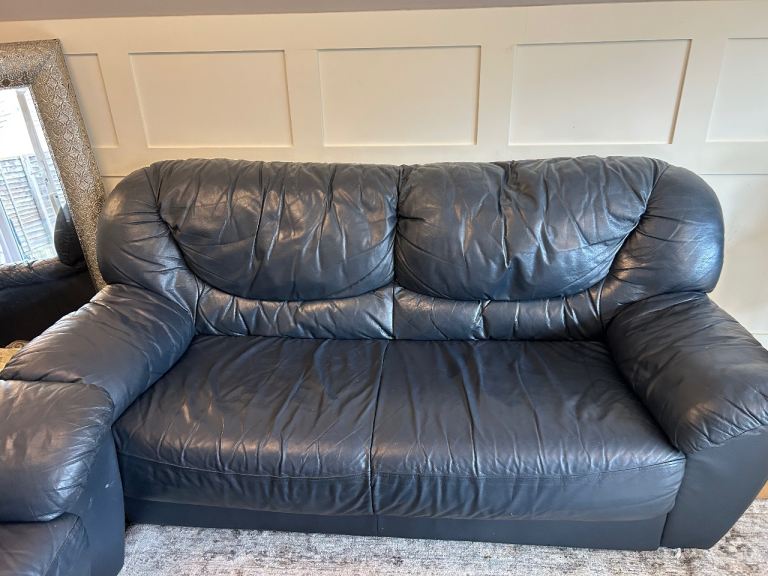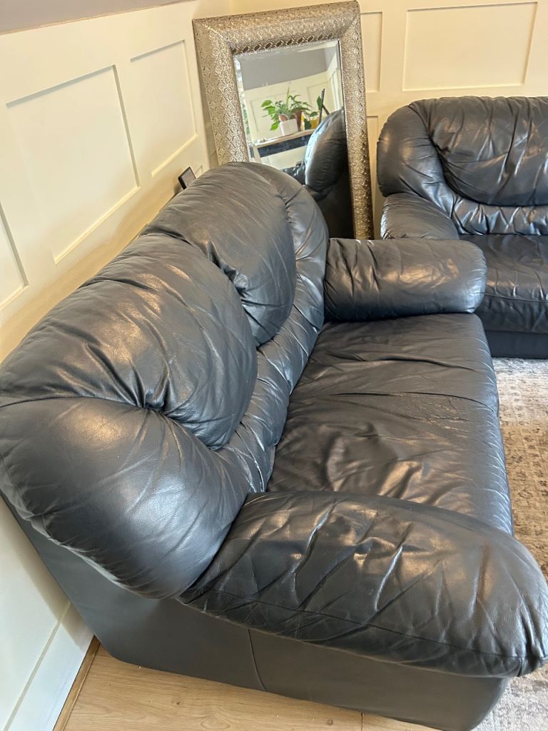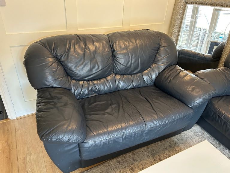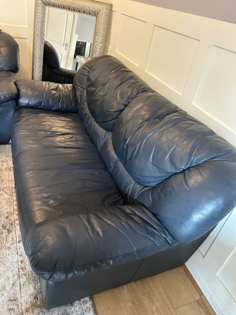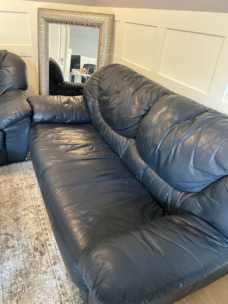 Two compact nice comfy navy leather sofas. Sofa1 L 180cm, Sofa2 L 140cm