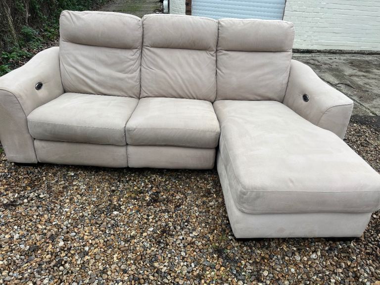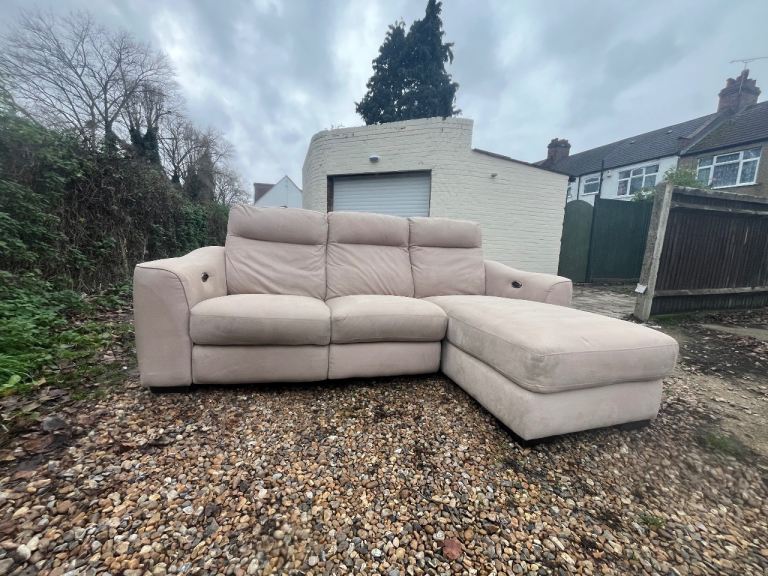 A gorgeous light beige electric reclining L shape corner sofa. Kept in excellent condition and has been professionally deep cleaned. All recliners in perfect working order. DELIVERY AVAILABLE TODAY!🚚🛋️✅