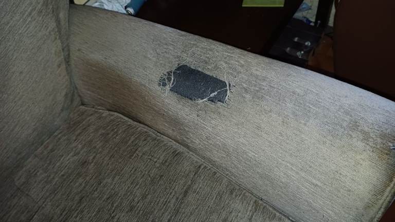 Slight fraying to left side armrest and also with 1 broken spring to left side cushion.