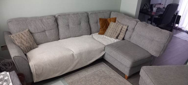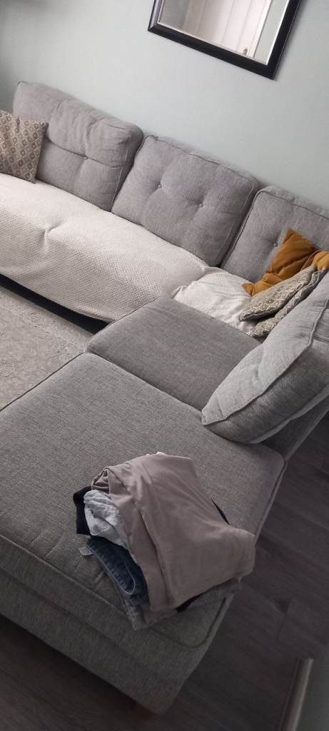 Posting for 3+ yearsLight grey frabric corner sofa