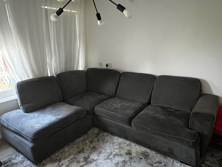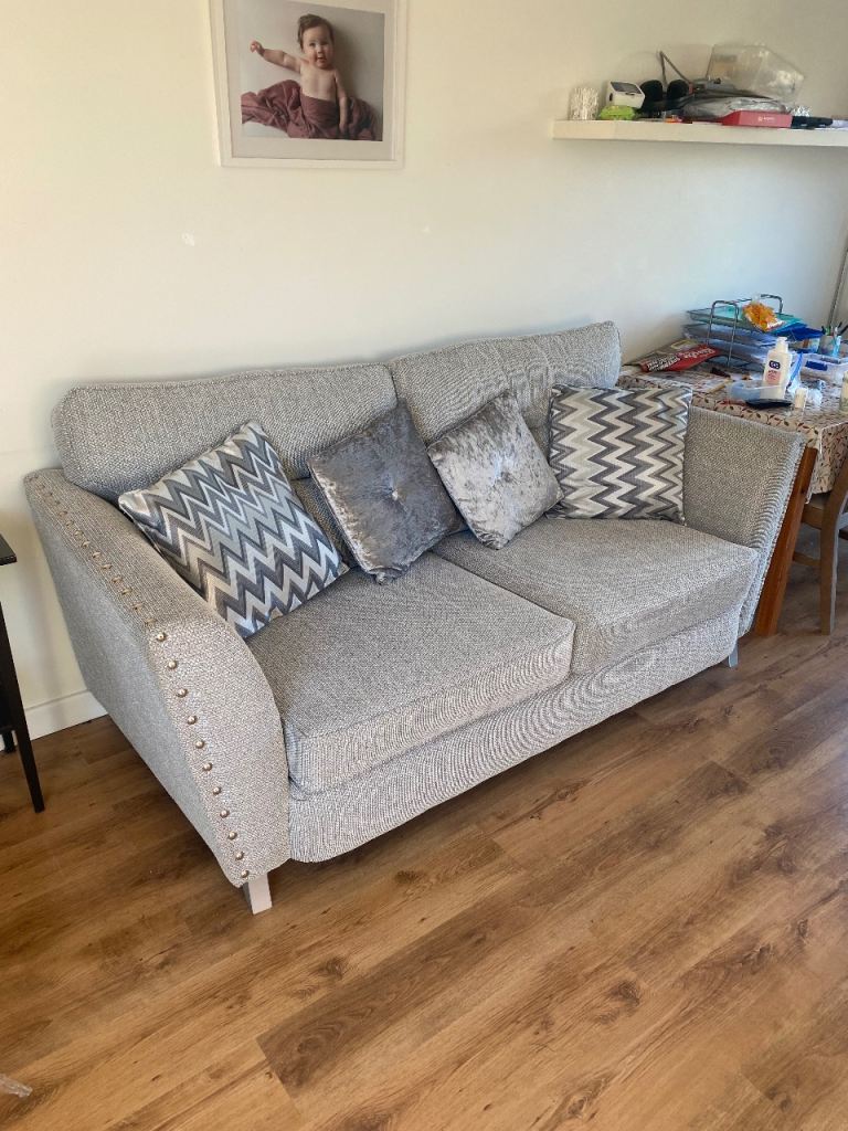 Posting for 3+ monthsLovely Grey Velvet Sofas - Two-Piece Set, Good Condition