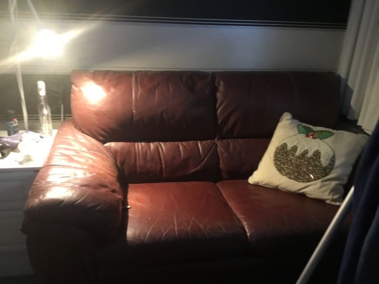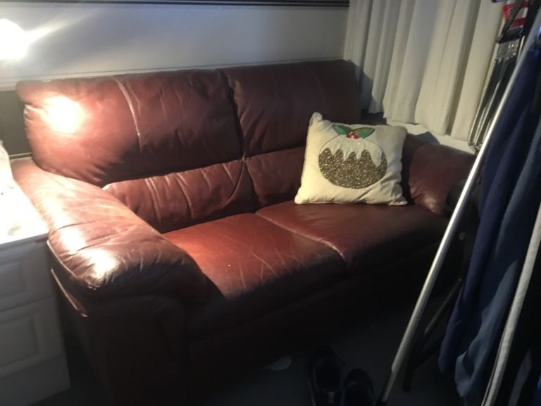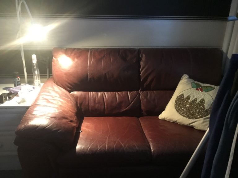 Red leather sofa 3 seater good condition