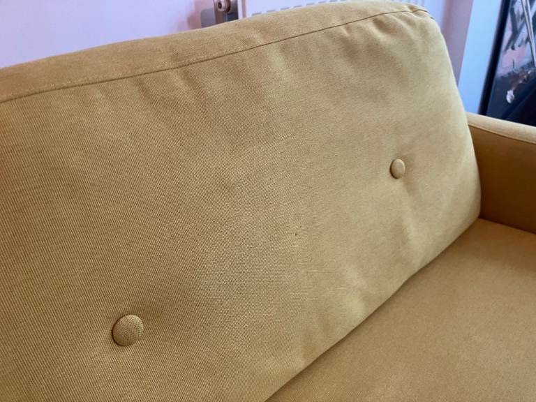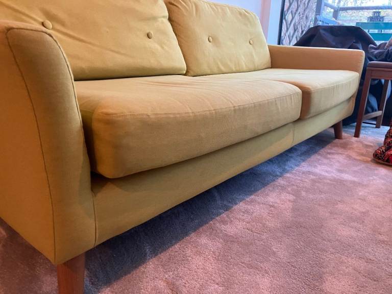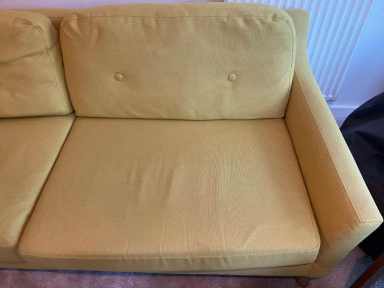 Posting for 11+ yearsMade com 3 seater sofa - mustard yellow