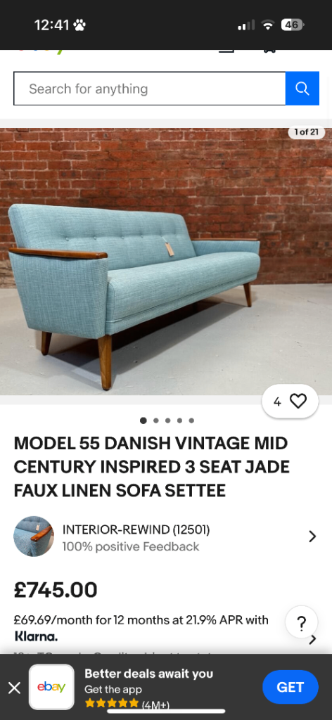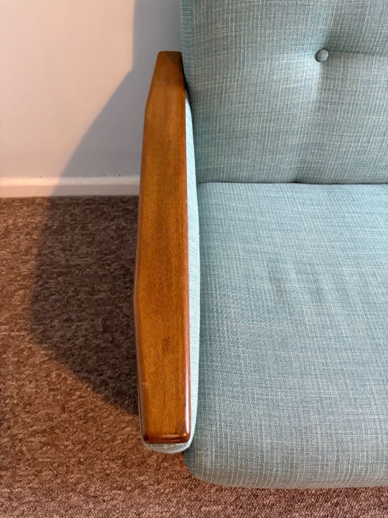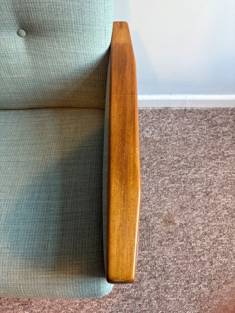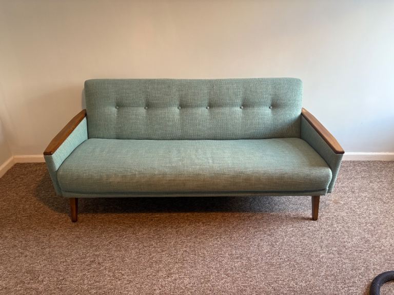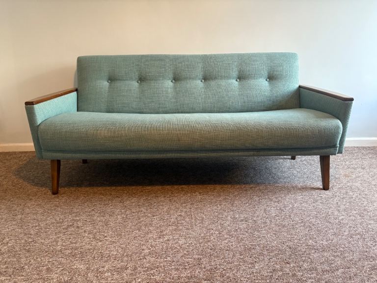 MODEL 55 DANISH VINTAGE MID CENTURY INSPIRED 3 SEAT JADE FAUX LINEN SOFA SETTEE