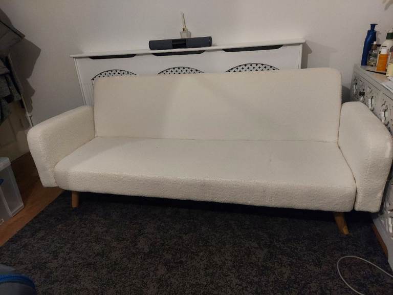 Modern 2-Seater Sofa bed in Cream Boucle – Minimalist Low-Profile Design