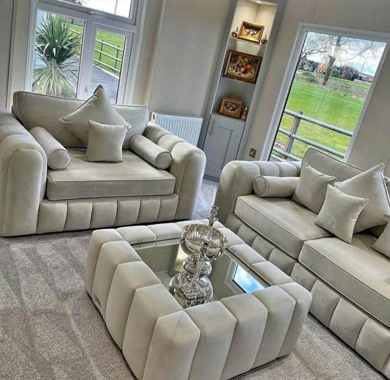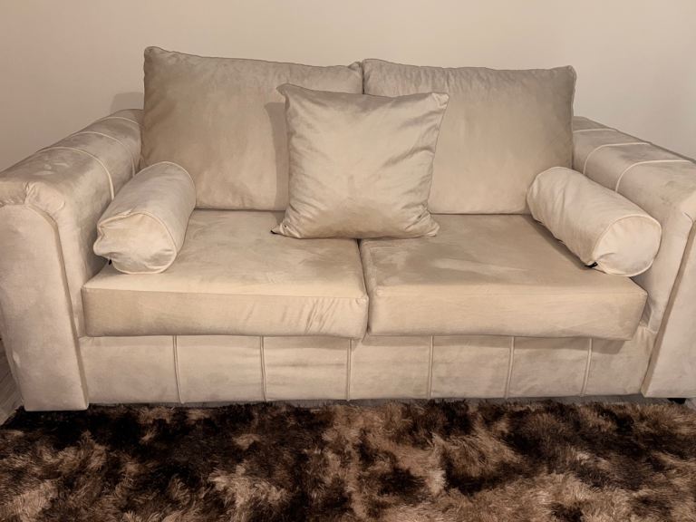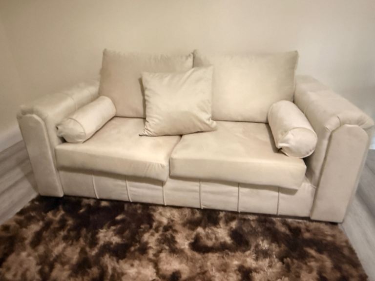 Posting for under a monthModern Cream Luxury Sofa in Plush Velvet with Tufted Design for Home Comfort & Affordable Style