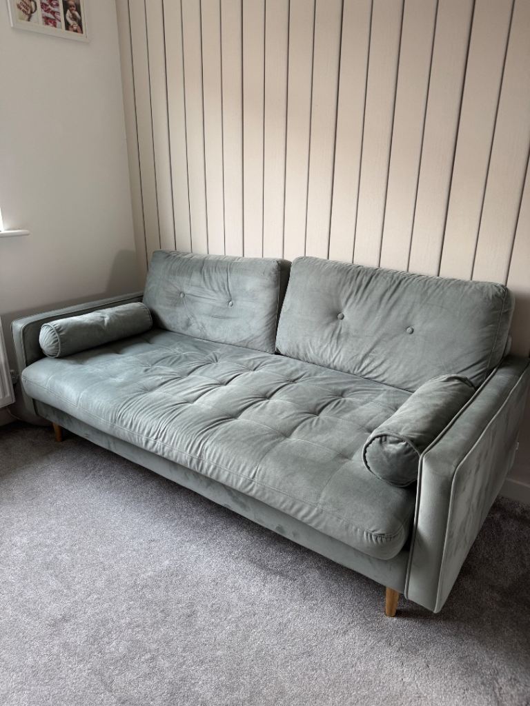 New unused sofa. Warehouse rejected due to poor packaging. No marks or anything wrong with it. New good quality comfy sofa.