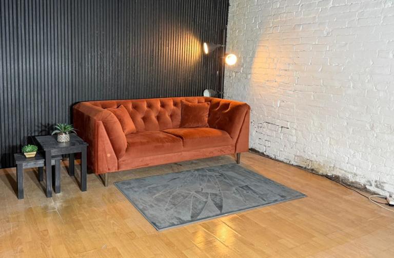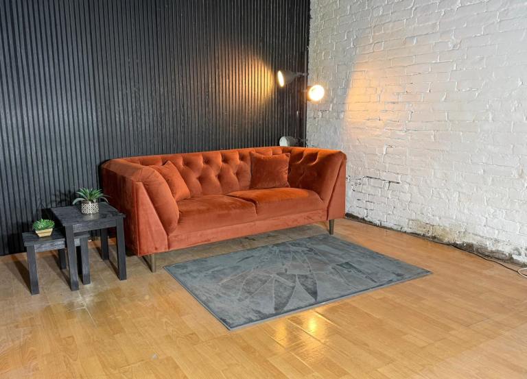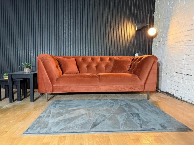 New Stock! HIGH STREET BRAND Sofology Orange Chesterfield Style 3 Seater Sofa