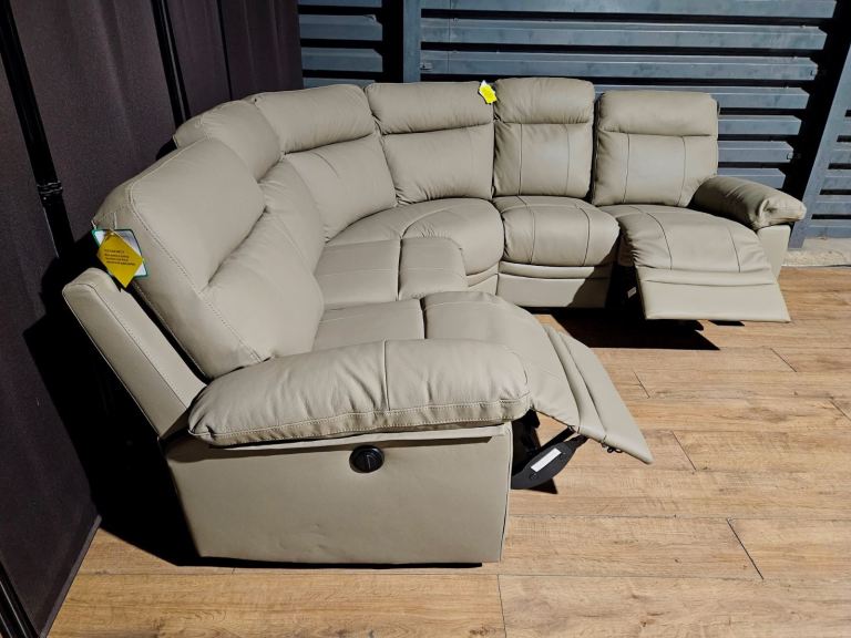 New Unused Electric Recliner Leather Corner Sofa Grey.