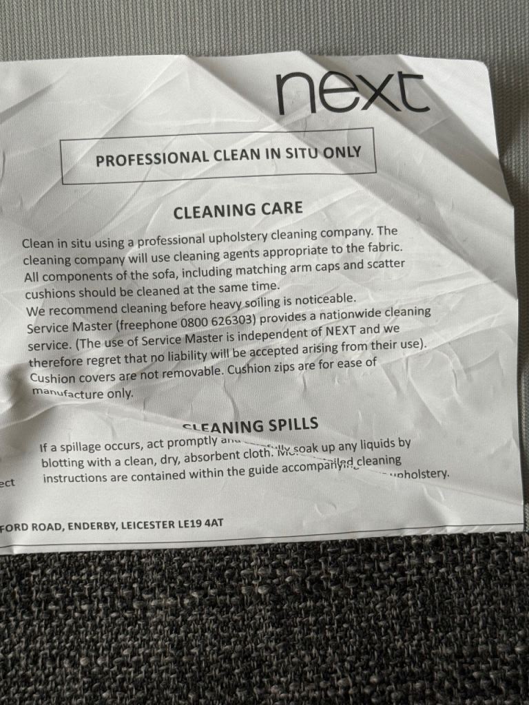 Fixed cover upholstery, cleaning instructions from Next included on the label. 190 cm length 93 depth, 98 height