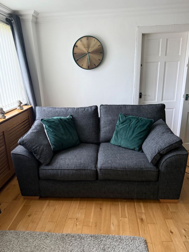 Lovely Next 2-seater sofa in a dark grey fabric, ideal for a living room or snug.