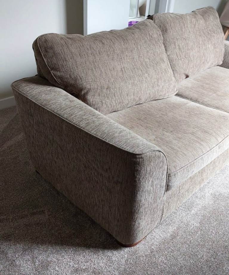 One of the cushions that leans against the arm is missing. Other than that, good condition